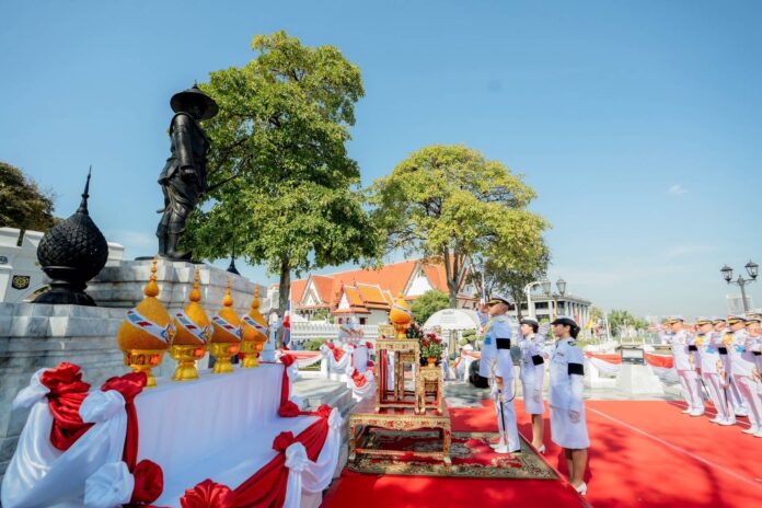 กองทัพเรือ จัดพิธีวางพานพุ่มถวายราชสักการะสมเด็จพระเจ้าตากสินมหาราชเนื่องในวันสมเด็จพระเจ้าตากสินมหาราชประจำปี 2568