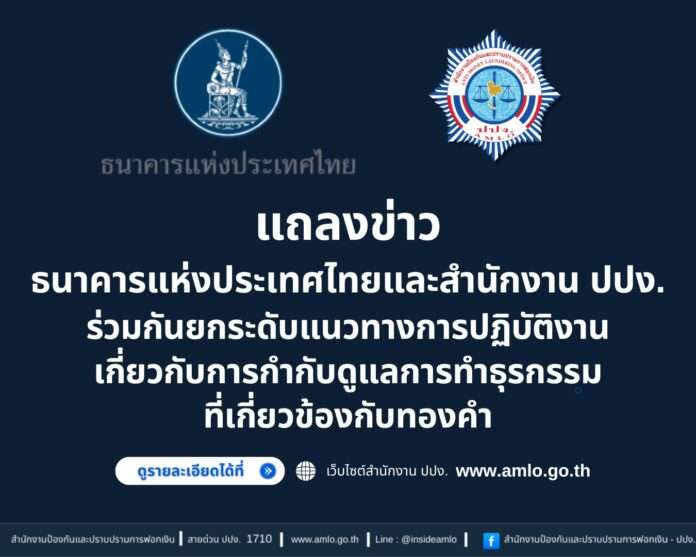 ธปท. และสำนักงาน ปปง. ร่วมกันยกระดับแนวทางการปฏิบัติงานเกี่ยวกับการกำกับดูแลการทำธุรกรรมที่เกี่ยวข้องกับทองคำ