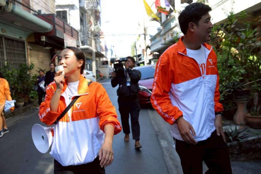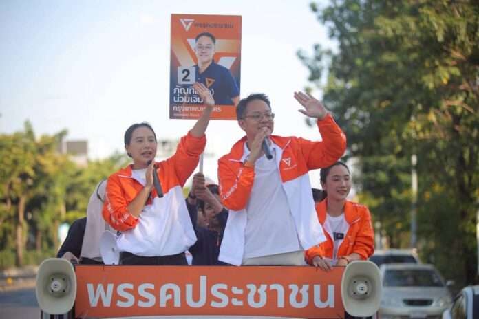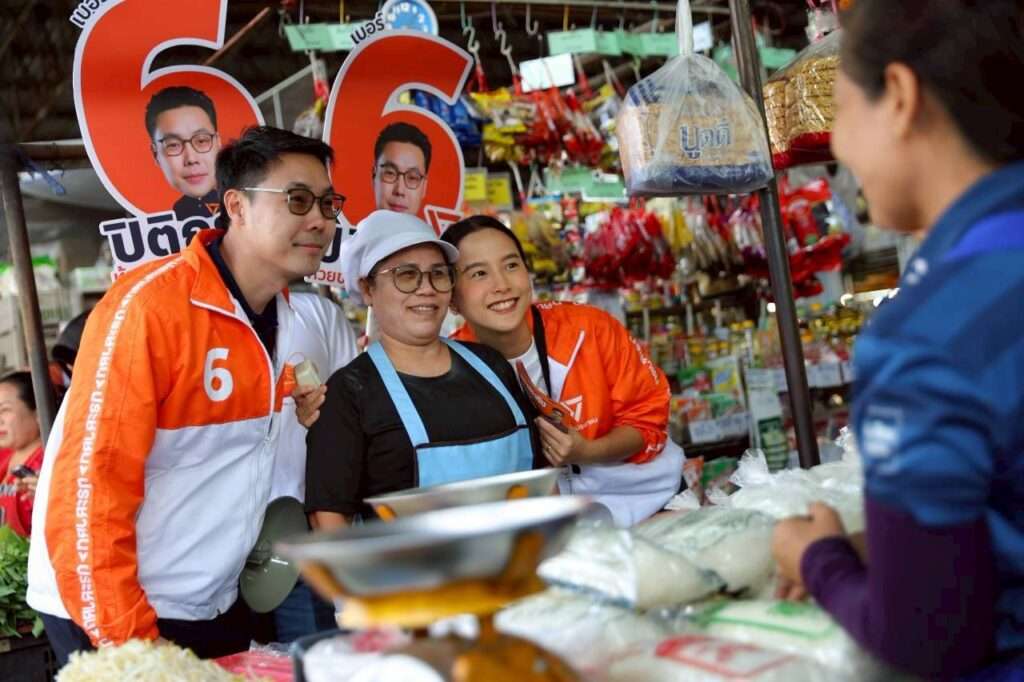 กรุงเทพฯ, วันที่ 2 มกราคม – “ไอซ์” รักชนก ศรีนอก ผู้สมัคร สส.บัญชีรายชื่อ พรรคประชาชน ช่วยหาเสียงผู้สมัคร สส.กทม. ของพรรค โดยช่วงเช้าเข้าพื้นที่ตลาดสะพานสอง ช่วยหาเสียงให้กับ ปิติกรณ์ บรรณเภสัช ผู้สมัคร สส. เขต 5 ห้วยขวาง-วังทองหลาง (ยกเว้นแขวงคลองเจ้าคุณสิงห์) เบอร์ 6