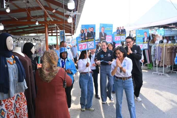 3 ม.ค. 69 – “การดี เลียวไพโรจน์” แคนดิเดต นายกฯพรรคประชาธิปัตย์ เดินเคียงบ่าเคียงไหล่ “สกลธี ภัททิยกุล” นำทีมผู้สมัคร สส.กทม. ลงหาเสียงพื้นที่เขต 18 มัสยิดอั้ลยุซรอ (หลอแหล) เขตสะพานสูง และเขต 19 พื้นที่ตลาดคุ้มเกล้า ลาดกระบังพร้อมชูนโยบายแก้ปัญหาเศรษฐกิจปากท้องคนกรุง “ไทยหายจน”