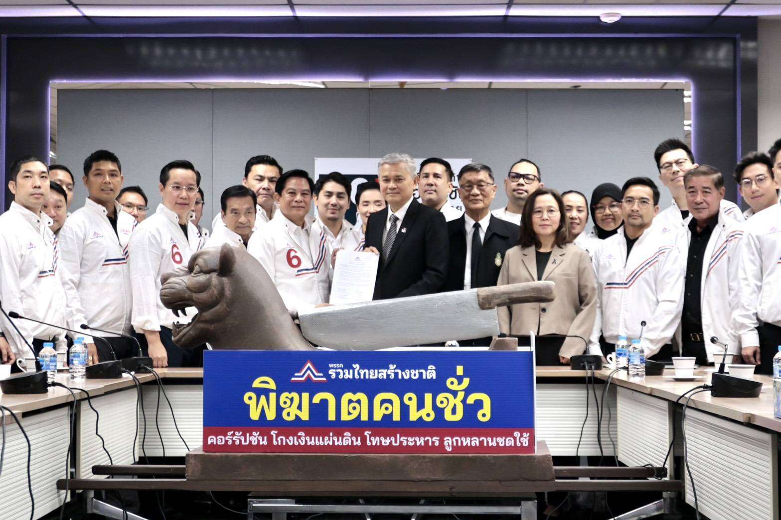 ในโอกาสลงนามสัตยาบันประกาศเจตนารมณ์ต่อต้านการทุจริตครั้งนี้ พรรครวมไทยสร้างชาติยังได้เปิดตัวสัญลักษณ์ “พิฆาตคนชั่ว” ตามนโยบายเรือธงของพรรค นั่นคือ สัญลักษณ์จำลอง “เครื่องประหารหัวพยัคฆ์” ที่ใช้ลงโทษขุนนางทุจริตและฉ้อราษฎร์บังหลวงในตำนานของ “เปาปุ้นจิ้น” บุคคลต้นแบบแห่งความเที่ยงตรงและยุติธรรมในประวัติศาสตร์จีน โดยสัญลักษณ์นี้จะถูกนำไปจัดวางที่บริเวณหน้าสำนักงานใหญ่ของพรรครวมไทยสร้างชาติ เพื่อสะท้อนเจตนารมณ์อันแน่วแน่ในการ “พิฆาตคนชั่ว” และเป็นเครื่องเตือนใจให้ข้าราชการและนักการเมืองทุกคนยึดมั่นในคุณธรรม ปฏิบัติหน้าที่ด้วยความซื่อสัตย์สุจริต และทำงานเพื่อประโยชน์สูงสุดของประเทศชาติและประชาชนเป็นที่ตั้ง