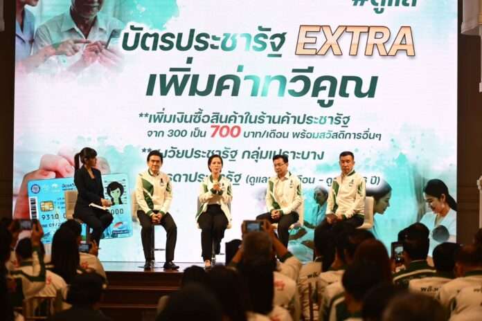 แคนดิเดตนายกรัฐมนตรี พปชร. กล่าวว่า สำหรับบัตรประชารัฐ Extra จะเพิ่มเงินซื้อสินค้าจำเป็นจาก 300 บาท เป็น 700 บาทต่อเดือน พร้อมสวัสดิการด้านค่าเดินทาง ค่าไฟฟ้า ค่าน้ำ ค่าแก๊ส และเงินช่วยเหลือผู้สูงอายุ ผู้พิการ รวมถึงโครงการ “สูงวัยประชารัฐ” ที่ให้เงินช่วยเหลือแบบขั้นบันไดตามช่วงอายุ และโครงการ “มารดาประชารัฐ” ดูแลแม่และเด็กกลุ่มเปราะบางตั้งแต่ตั้งครรภ์จนถึงอายุ 6 ปี