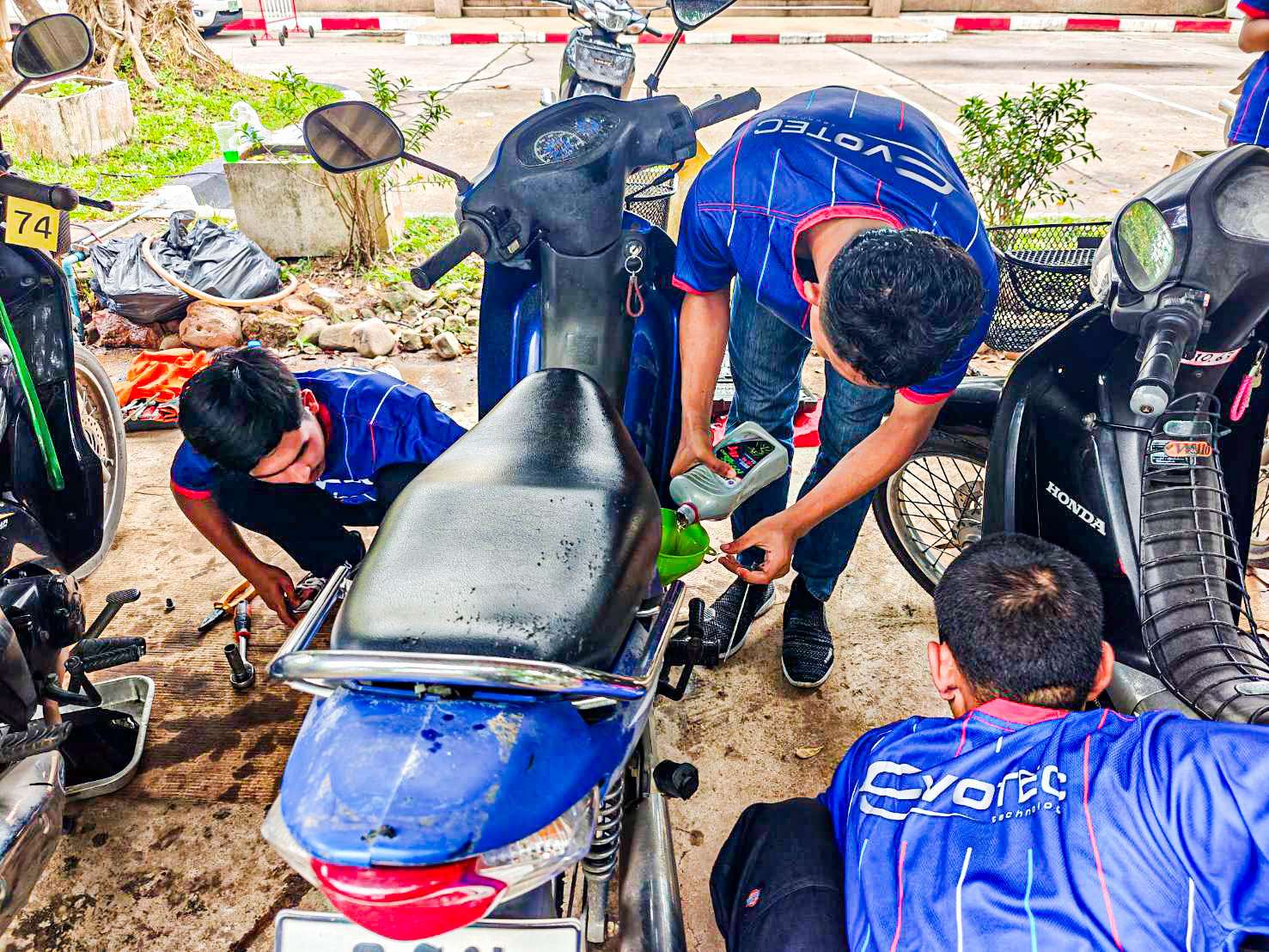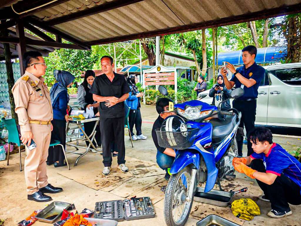 ศูนย์ฝึกอาชีพพระราชทาน จชต. ส่งเยาวชนจิตอาสาออกหน่วยให้บริการเปลี่ยนถ่ายน้ำมันเครื่อง แก่ ปชช.