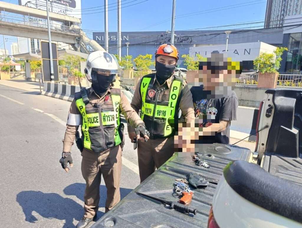 ตำรวจจราจร สน.วิภาวดี จับกุมชายวัย 39 ปี หลังออกตรวจพื้นที่ถนนวิภาวดีรังสิตขาเข้า พบรถกระบะต้องสงสัยจอดอยู่ริมทาง ตรวจค้นพบอาวุธปืนขนาด .38 พร้อมเครื่องกระสุนและอาวุธมีด ซุกซ่อนภายในรถ ก่อนควบคุมตัวดำเนินคดี
