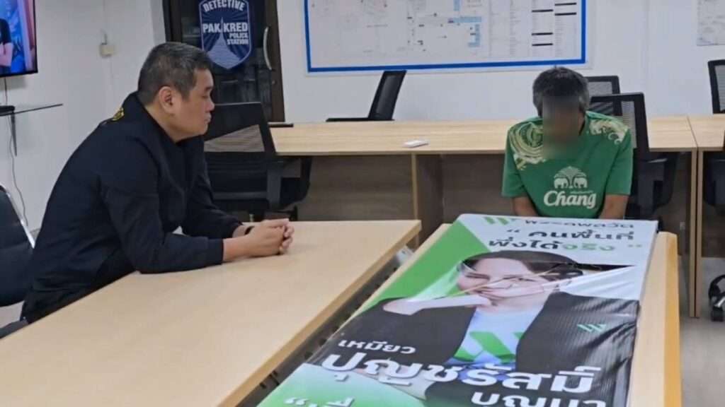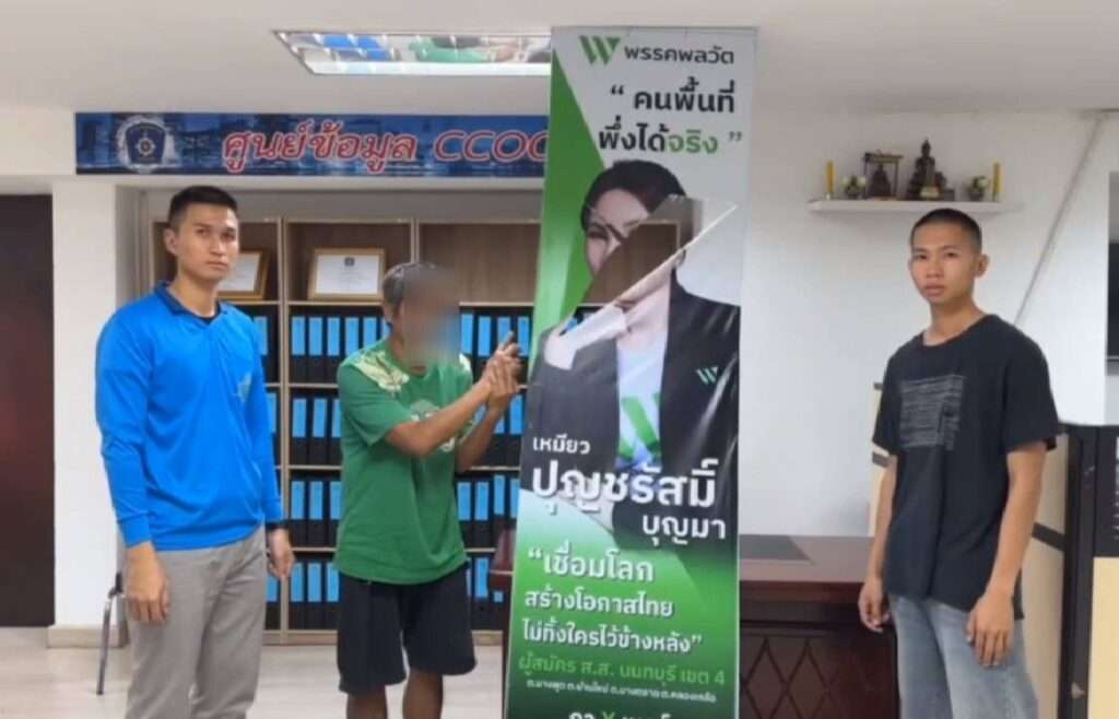 ความคืบหน้าล่าสุด เวลา 22.30 น. วันที่ 7 ม.ค. 69 พ.ต.อ.อดิเรก ทองแกมแก้ว ผกก.สภ.ปากเกร็ด พ.ต.ท.การุณย์ ลิมปิโรจนฤทธิ์ รอง ผกก.สส.สภ.ปากเกร็ด พ.ต.ท.วิศิษฏ์ ชมเชย สว.สส.สภ.ปากเกร็ด พร้อมด้วยเจ้าหน้าที่ชุดสืบสวน สภ.ปากเกร็ด ได้จับกุมตัวนายน้อย (ไม่ทราบชื่อ-นามสกุลจริง ไม่พบข้อมูลทะเบียนราษฎร์) อายุ 45 ปี ผู้ก่อเหตุทำลายป้ายหาเสียงของ น.ส.ปุญชรัสมิ์ บุญมา หรือเหมียว อายุ 30 ปี ผู้สมัคร สส. เขต 4 (เบอร์ 4) จังหวัดนนทบุรี พรรคพลวัต พร้อมด้วยของกลาง 1. เสื้อยืดสีเขียว จำนวน 1 ตัว 2.กางเกงสามส่วนสีดำ จำนวน 1 ตัว 3.มีดคัตเตอร์ ความยาว 17 ซม. โดยจับกุมตัวได้ที่ บริเวณหน้าโลตัส สาขาแยกสวนสมเด็จฯ หมู่ที่ 3 ต.บ้านใหม่ อ.ปากเกร็ด จ.นนทบุรี