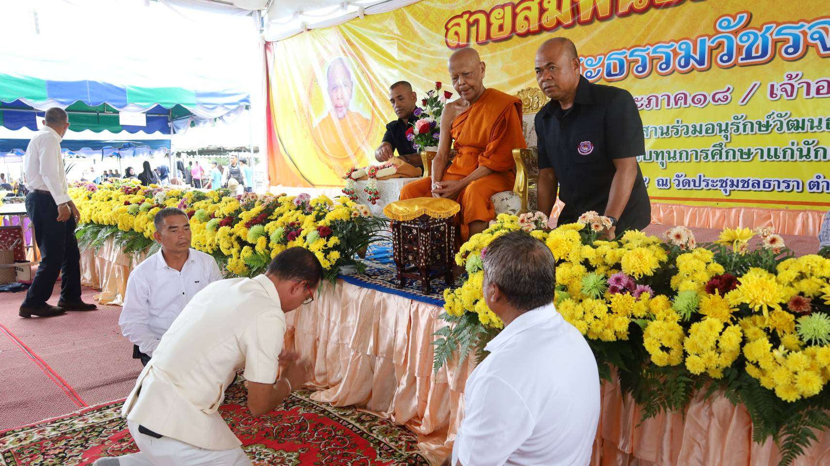 นราธิวาส, – นายบุญช่วย หอมยามเย็น ผู้ว่าราชการจังหวัดนราธิวาส เป็นประธานในพิธี “ฉลองอายุวัฒนมงคล ครบรอบ 88 ปี 67 พรรษา พระธรรมวัชรจริยาจารย์” (เทพสิทธิญาณรังสี) ที่ปรึกษาเจ้าคณะภาค 18 และเจ้าอาวาสวัดประชุมชลธารา ที่วัดประชุมชลธารา ต.สุไหงปาดี อ.สุไหงปาดี จ.นราธิวาส ท่ามกลางศิษยานุศิษย์ และผู้มีจิตศรัทธา ที่มาร่วมพิธีอย่างคับคั่ง