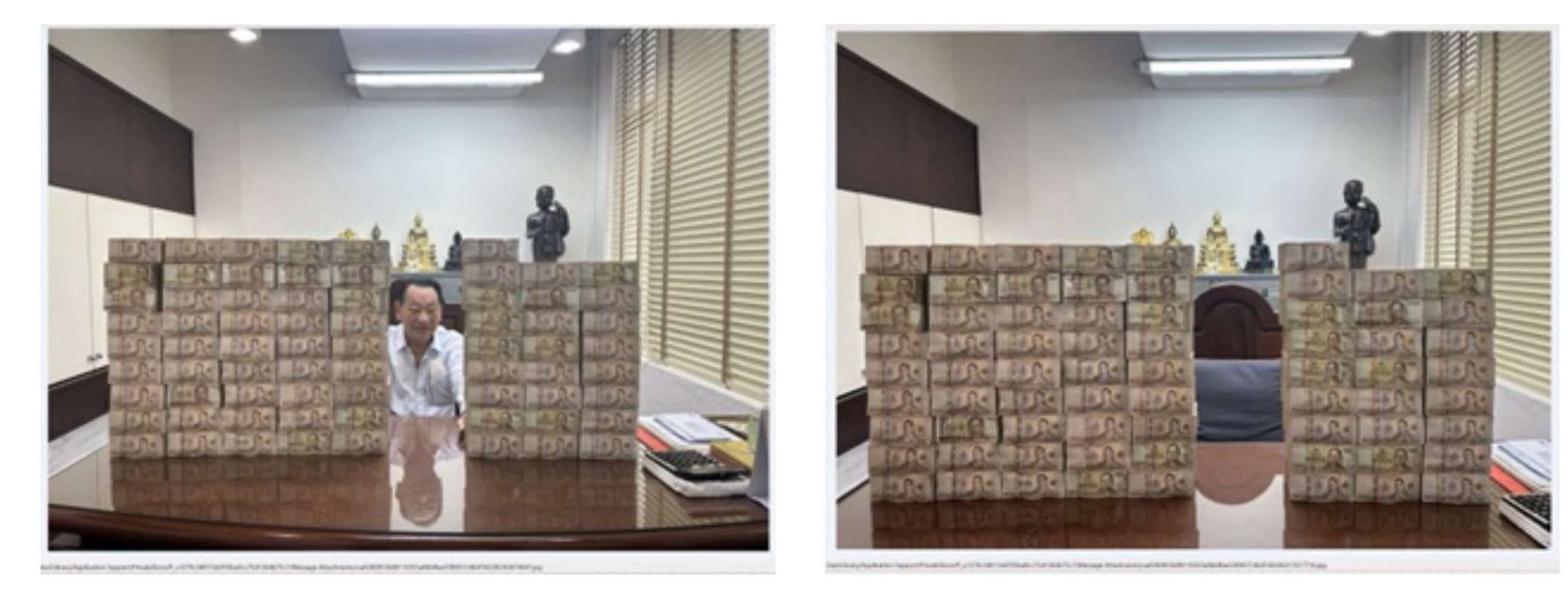 พร้อมกันนี้พล.ต.อ.สุรเชษฐ์ ยังให้ลูกน้องนำเงินสดจำนวนมากจากบ้านของตนเอง ไปส่งมอบให้กับ นายสมภพ หรือ “อั้ง เมืองชล” ที่บ้านพัก เพื่อจัดฉากถ่ายรูปสร้างความน่าเชื่อถือ ก่อนขนเงินสดกลับไปเก็บไว้ที่บ้านพักตามเดิมในวันเดียวกัน