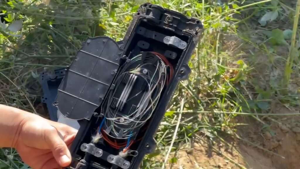 ส่วนจุดที่สอง เจ้าหน้าที่นำกำลังพร้อมหมายค้นจังหวัดแม่สอด ที่ ค 2/2569 เข้าตรวจค้นเป้าหมายโกดังร้างไม่มีเลขที่ ตั้งอยู่ในพื้นที่ ต.แม่กาษา อ.แม่สอด จ.ตาก ผลการตรวจค้นพบการลักลอบลากสายเคเบิลไฟเบอร์ออฟติก ข้ามไปยังฝั่งชเวโก๊กโก่ ประเทศเมียนมา โดยเจ้าหน้าที่ได้ทำการตรวจยึด สายไฟเบอร์ออฟติกยาว 30 เมตร จำนวน 1 ม้วน และOptic encloser จำนวน 1 กล่อง ซึ่งทั้งสองจุดเป็นการกระทำในความผิดตาม พ.ร.บ. วิทยุคมนาคม พ.ศ. 2498