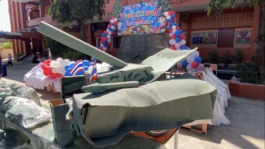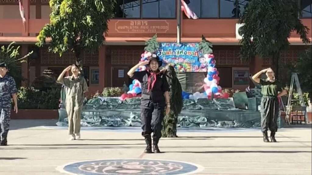 ฮือฮาสร้างรอยยิ้มวันเด็ก! โรงเรียนรุ่งเรืองวิทยา จ.นนทบุรี จัดกิจกรรมสุดสร้างสรรค์ ปลูกฝังเยาวชนรักชาติ–รักทหาร ครูแต่งเครื่องแบบ 3 เหล่าทัพ จำลองยุทโธปกรณ์ สื่อสารบทบาทการปกป้องอธิปไตยไทย ท่ามกลางบรรยากาศสนุกสนาน พร้อมปลุกจิตสำนึกความสามัคคี ส่งกำลังใจถึงทหารชายแดน สะท้อนแนวคิด “เด็กวันนี้ คืออนาคตของชาติ”