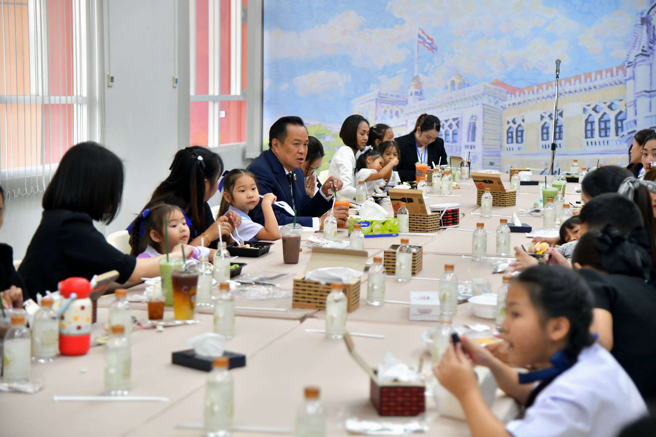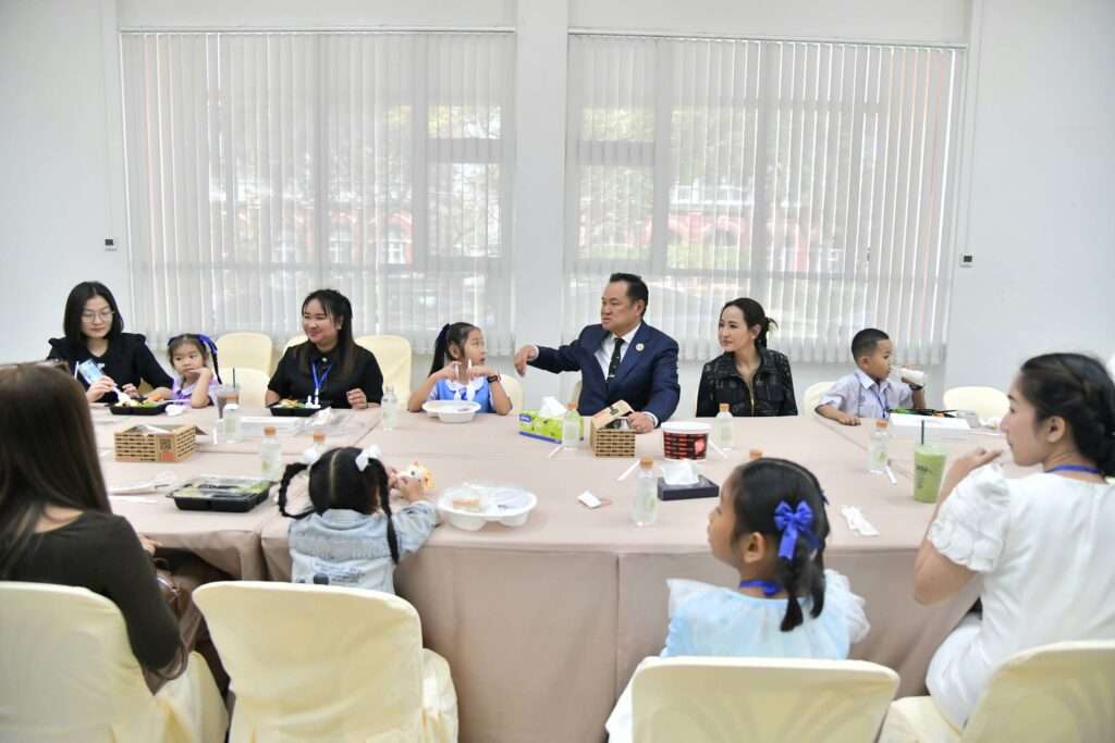 ทำเนียบรัฐบาล, วันที่ 10 มกราคม – นายอนุทิน ชาญวีรกูล นายกรัฐมนตรีและรัฐมนตรีว่าการกระทรวงมหาดไทย เป็นประธานกิจกรรมเลี้ยงอาหารกลางวันแก่บุตรหลาน และครอบครัววีรชนจากเหตุปะทะบริเวณชายแดนไทย–กัมพูชา จำนวน 21 ครอบครัว รวม 43 คน เนื่องในวันเด็กแห่งชาติ เพื่อสร้างขวัญกำลังใจและแสดงความห่วงใยจากรัฐบาล โดยมี น.ส.ธนนนท์ นิรามิษ ภริยา และ น.ส.ไตรศุลี ไตรสรณกุล เลขาธิการนายกรัฐมนตรี ร่วมรับประทานอาหารด้วย บรรยากาศภายในงานเป็นไปอย่างอบอุ่น เป็นกันเอง โดยมีการจัดเมนูอาหารหลากหลายสำหรับเด็กๆ และครอบครัว เพื่อร่วมเฉลิมฉลองวันเด็กแห่งชาติอย่างเรียบง่ายแต่เปี่ยมด้วยความหมาย