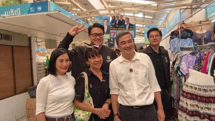 กรุงเทพฯ, วันที่ 10 มกราคม 2569 เวลา นายอภิสิทธิ์ เวชชาชีวะ แคนดิเดตนายกรัฐมนตรี และหัวหน้าพรรคประชาธิปัตย์พร้อมด้วยนายองอาจ คล้ามไพบูลย์ ที่ปรึกษาหัวหน้าพรรค นายกรณ์ จาติกวณิช ดร.การดี เลียวไพโรจน์ แคนดิเดตนายกรัฐมนตรี และรองหัวหน้าพรรค และนายสกลธี ภัททิยกุล รองหัวหน้าพรรค ดูแลพื้นที่กรุงเทพฯ และ ผู้สมัคร สส.กทม.เขต 8 เบอร์ 14 ครอบคลุมพื้นที่ เขตหลักสี่ (ยกเว้นแขวงตลาดบางเขน) เขตจตุจักร (ยกเว้นแขวงจันทร์เกษมและแขวงเสนานิคม) ลงพื้นที่หาเสียง ที่ ตลาดบองมาเช่ และ ตลาดอตก. เขตจตุจักร