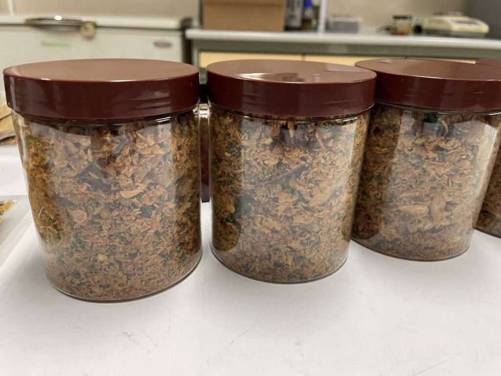 อาจารย์ญาธิปวีร์ ปักแก้ว นักวิทยาศาสตร์ชำนาญการ ฝ่ายโภชนาการและสุขภาพ และ อาจารย์พัทธินันท์ วาริชนันท์ นักวิจัยชำนาญการพิเศษ ฝ่ายจุลชีววิทยาประยุกต์ ทีมวิจัยนวัตกรรม “ปลาหมอคางดำฟู” อธิบายว่า ทีมวิจัยใช้หลักการเฮอเดิลเทคโนโลยี (Hurdle Technology) หรือการถนอมอาหารแบบผสมผสาน ร่วมกับการใช้กระบวนการที่สำคัญ โดยเฉพาะ การแช่เนื้อปลาด้วยน้ำเกลือความเข้มข้น 5% เพื่อช่วยเพิ่มรสชาติให้กับเนื้อปลา และลดความคาว ร่วมด้วยการทำแห้งด้วยลมร้อน ควบคุมอุณหภูมิและความชื้นในช่วงที่เหมาะสม จนได้เนื้อปลาฟูที่มีรสชาติ และเนื้อสัมผัสที่ดีและเป็นที่ยอมรับ มีความฟูและกลิ่นหอมที่มีเอกลักษณ์ เก็บรักษาได้นานถึง 6 เดือน โดยไม่มีวัตถุกันเสีย และยังคงคุณค่าทางโภชนาการของเนื้อปลาไว้ได้อย่างดี