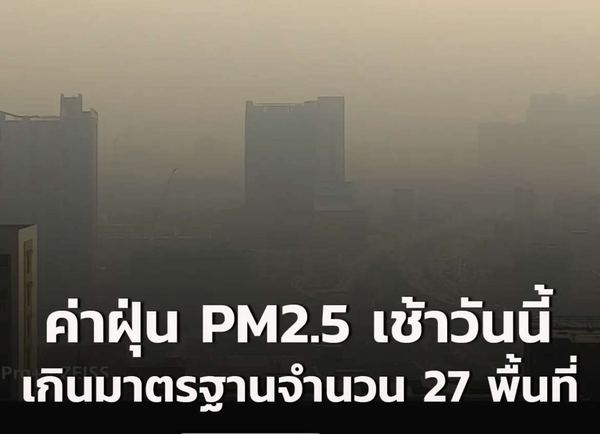 ค่าฝุ่น PM2.5 เช้านี้เกินมาตรฐาน 27 พื้นที่ กทม. เข้าระดับสีส้ม เริ่มกระทบสุขภาพ