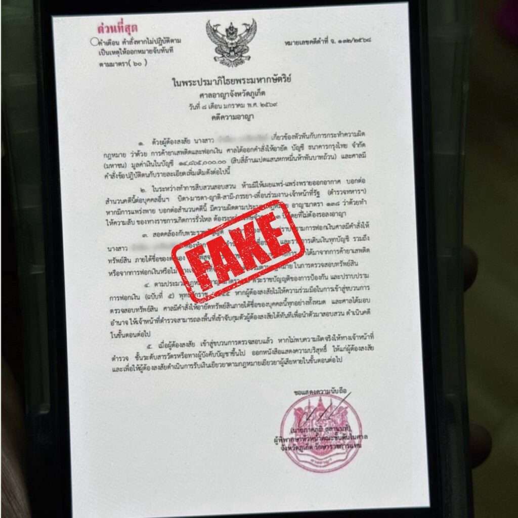 ศูนย์ต่อต้านการฉ้อโกงออนไลน์ (ACSC) ขอเตือนภัยและย้ำเตือนประชาชน โดยเฉพาะผู้สูงอายุและครอบครัวให้เพิ่มความระมัดระวังกรณีดังกล่าว โดยมิจฉาชีพมักจะเลือกเหยื่อสูงวัย โทรศัพท์หาอ้างตัวเป็นเจ้าหน้าที่รัฐ พร้อมระบุว่าบัญชีมีส่วนเกี่ยวข้องกับการกระทำความผิดในลักษณะต่าง ๆ ก่อนบังคับ ข่มขู่ให้อยู่คนเดียว ห้ามบอกใครเพราะเป็นความลับทางราชการ มิหนำซ้ำยังส่งเอกสารราชปลอมเพื่อสร้างความน่าเชื่อถือจึงขอเน้นย้ำประชาชน อย่าหลงเชื่อคำขู่เรื่องบัญชีถูกอายัดหรือมีส่วนพัวพันกับการกระทำความผิด เพราะเจ้าหน้าที่ตำรวจ เจ้าหน้าที่ธนาคารหรือหน่วยงานของรัฐ จะไม่มีการโทรศัพท์แจ้งว่าเกี่ยวข้องกับการทำผิดกฎหมาย, ไม่ให้แอดไลน์เพื่อส่งเอกสารราชการ, ไม่วิดีโอคอลสอบปากคำ และที่สำคัญที่สุด จะไม่มีการให้โอนเงินเพื่อตรวจสอบบัญชีเด็ดขาด