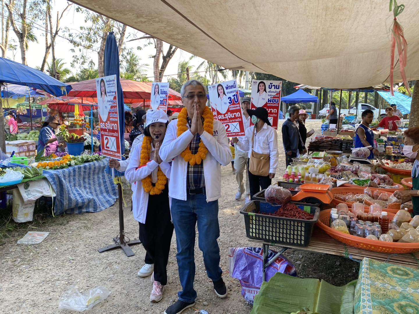 “ลองเลือกพรรคเพื่อไทยบ้างเห้อพี่น้อง ถ้าทำใจเลือก 2 ใบไม่ได้ กาให้สักใบก็ยังดีครับ” นายก่อแก้วกล่าว