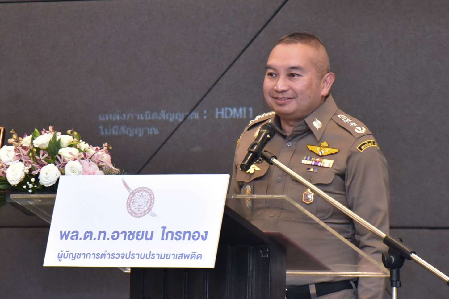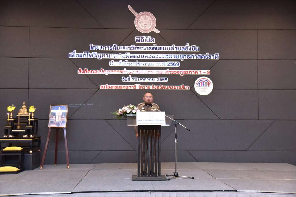 เมื่อวันที่ 13 มกราคม 2569 ณ โรงแรมแคนทารี โคราช จังหวัดนครราชสีมา พล.ต.ท.อาชยน ไกรทอง ผู้บัญชาการตำรวจปราบปรามยาเสพติด เป็นประธานเปิด “โครงการสัมมนาวิทยากรต้นแบบตำบลยั่งยืน เพื่อแก้ไขปัญหายาเสพติดแบบครบวงจรตามยุทธศาสตร์ชาติ” โดยมีข้าราชการตำรวจระดับวิทยากรต้นแบบจากกองบัญชาการตำรวจนครบาล และตำรวจภูธรภาค 1–9 เข้าร่วม รวมทั้งสิ้น 170 นาย