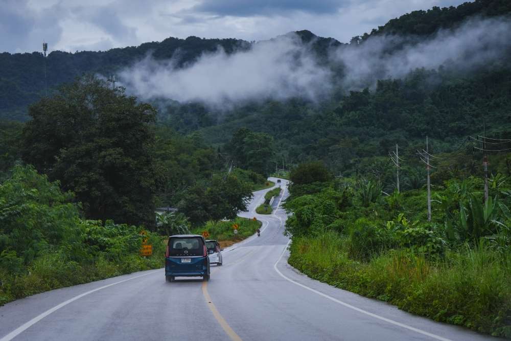 ทริปครั้งนี้เรามากับ นิสสัน เซเรน่า อี-พาวเวอร์ ที่ช่วยให้การเดินทางระยะยาวผ่อนคลายขึ้นตั้งแต่เริ่มออกจากตัวเมือง จังหวะขึ้นเขาและโค้งคดเคี้ยวให้ฟีลนุ่ม เงียบ และมั่นใจ เพราะกำลังจากระบบ e-POWER ตอบสนองทันทีที่แตะคันเร่ง​ พลาดไม่ได้กับหนึ่งในจุดที่ต้องแวะคือ น้ำตกปุญญบาล สายน้ำใสที่ไหลรินริมถนนเพชรเกษมตลอดทั้งปี เป็นมุมพักขาและเก็บภาพบรรยากาศได้อย่างลงตัว