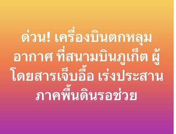 จากกรณีที่ปรากฏข่าวสารผ่านสื่อสำนักข่าวออนไลน์ว่ามีเครื่องบินตกหลุมอากาศที่สนามบินภูเก็ต ผู้โดยสารเจ็บอื้อ เร่งประสานภาคพื้นดินรอช่วย นั้น