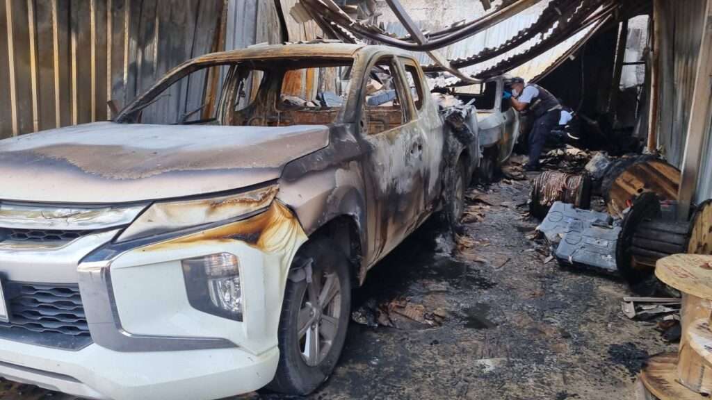 ส่วนร้านที่ 2 ขายอุปกรณ์ไฟฟ้า มีรถกระบะ ยี่ห้อมิซซูบิชิ สีขาว หมายเลขทะเบียน 3 ฒง8119 กทม. พร้อมรถบันทุกของและอุปกรณ์ไฟฟ้าถูกไฟไหม้ทั้งหมด ส่วนร้านที่ 3 เป็นร้านขายต้นไม้ได้รับความเสียหายจากการสอบถาม น.ส.อัญชลีภัสร์ อายุ 35 ปี เจ้าของร้านของชำกล่าวว่า ช่วงที่เกิดเหตุเกิดเวลาประมาณ 22.50 น.ในช่วงที่ตนจะเข้าห้องนอนและเริ่มได้กลิ่นเหมือนไม้ขีดไฟจากนั้นก็ได้หันไปถามป้าที่อยู่ด้วยกันว่าป้าได้กลิ่นเหมือนกันหรือเปล่าซึ่งป้าได้บอกกับตนว่าไม่ได้กลิ่นอะไรและป่าก็เข้านอนซึ่งตนกังวลได้เดินออกมาดูด้านหน้าบ้านจึงเห็นเป็นหมอกควันจางๆและตนก็จะเข้าบ้านและตนเห็นเป็นเปลไฟลุกขึ้นมาจากห้องข้างซึ่งเป็นโกดังเก็บเครื่องใช้ไฟฟ้าจำพวกแบตรเตอร์รี่ ส่งออกจากนั่นตนตั่งสติเอาของมีค่าออกมาพร้อมกับแมว ต่อมามีเสียงเหมือประทัดและเสียงระเบิดตามมาและมีเปลวไฟลุกท่วม ซึ่งพอเข้าหน้าที่ดับเพลิงมาถึงจึงรีบฉีดน้ำดับเพลิง