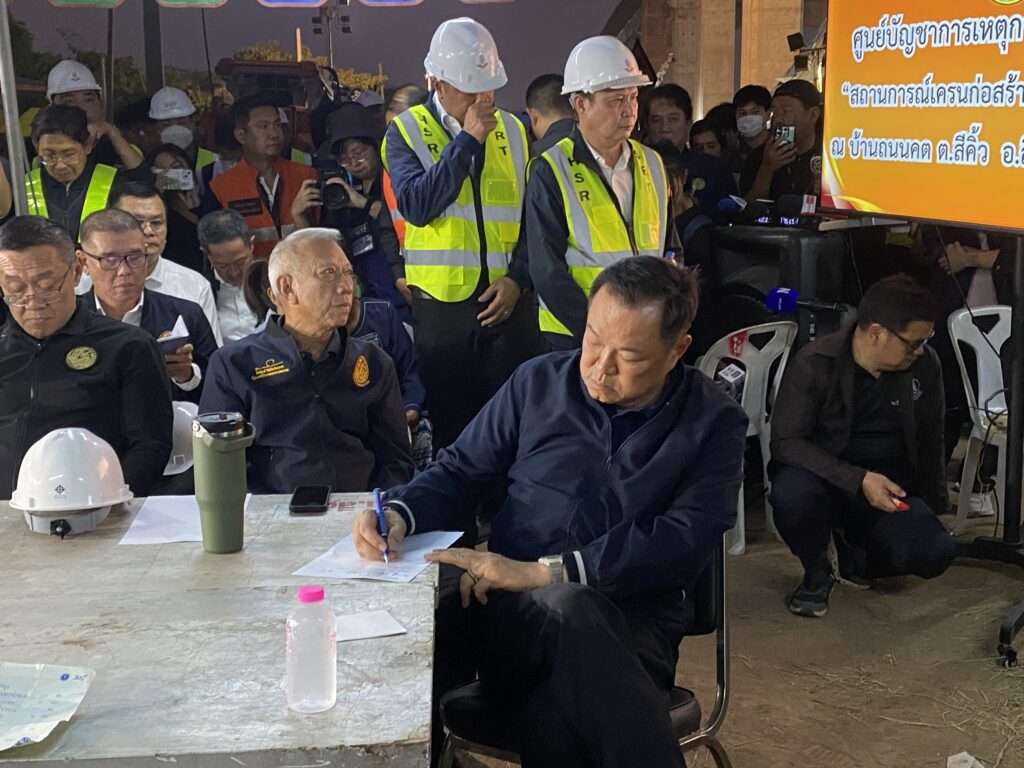 นครราชสีมา, วันที่ 14 มกราคม 2569 เวลา 17.50 น. – นายอนุทิน ชาญวีรกูล นายกรัฐมนตรี และรมว.มหาดไทย พร้อมด้วยนายพิพัฒน์ รัชกิจประการ รองนายกรัฐมนตรี และ รมว.คมนาคม เดินทางไปที่จุดเกิดเหตุเครนในโครงการก่อสร้างรถไฟความเร็วสูงหล่นทับขบวนรถไฟโดยสารด่วนดีเซลรางปรับอากาศ ขบวนที่ 21 เส้นทางกรุงเทพอภิวัตน์–อุบลราชธานี บริเวณทางรถไฟบ้านถนนคต ช่วงสถานีหนองน้ำขุ่น–สถานีสีคิ้ว ต.สีคิ้ว อ.สีคิ้ว จ.นครราชสีมา