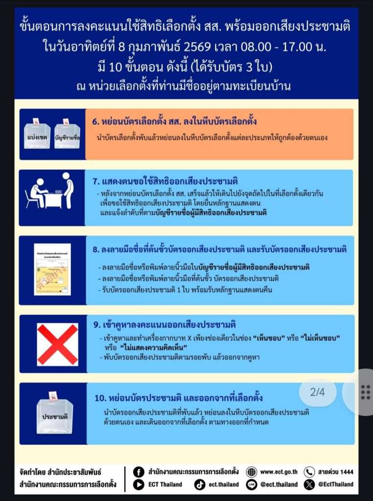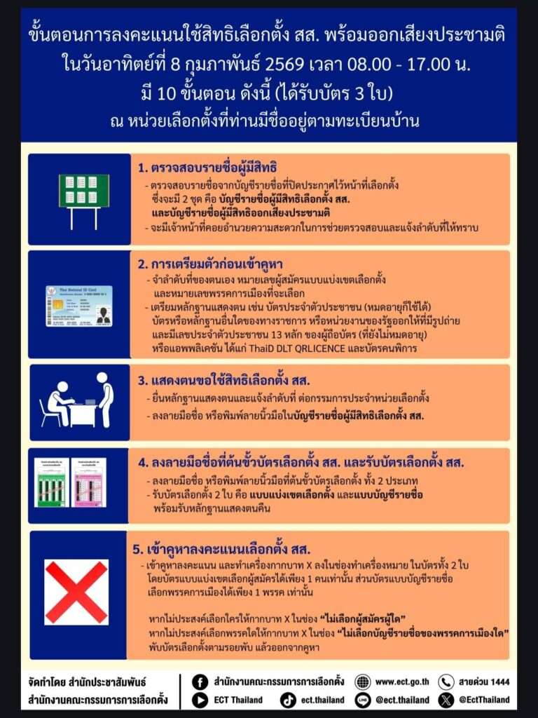 กอ.รมน. ขอแนะนำให้ประชาชนตรวจสอบสีของบัตรให้ถูกต้องก่อนเข้าคูหาลงคะแนน และทำเครื่องหมายกากบาท (X) ภายในกรอบที่กำหนด ไม่กานอกช่อง ไม่กาเกินจำนวน และไม่เขียนข้อความเพิ่มเติม เพื่อป้องกันไม่ให้บัตรเสีย