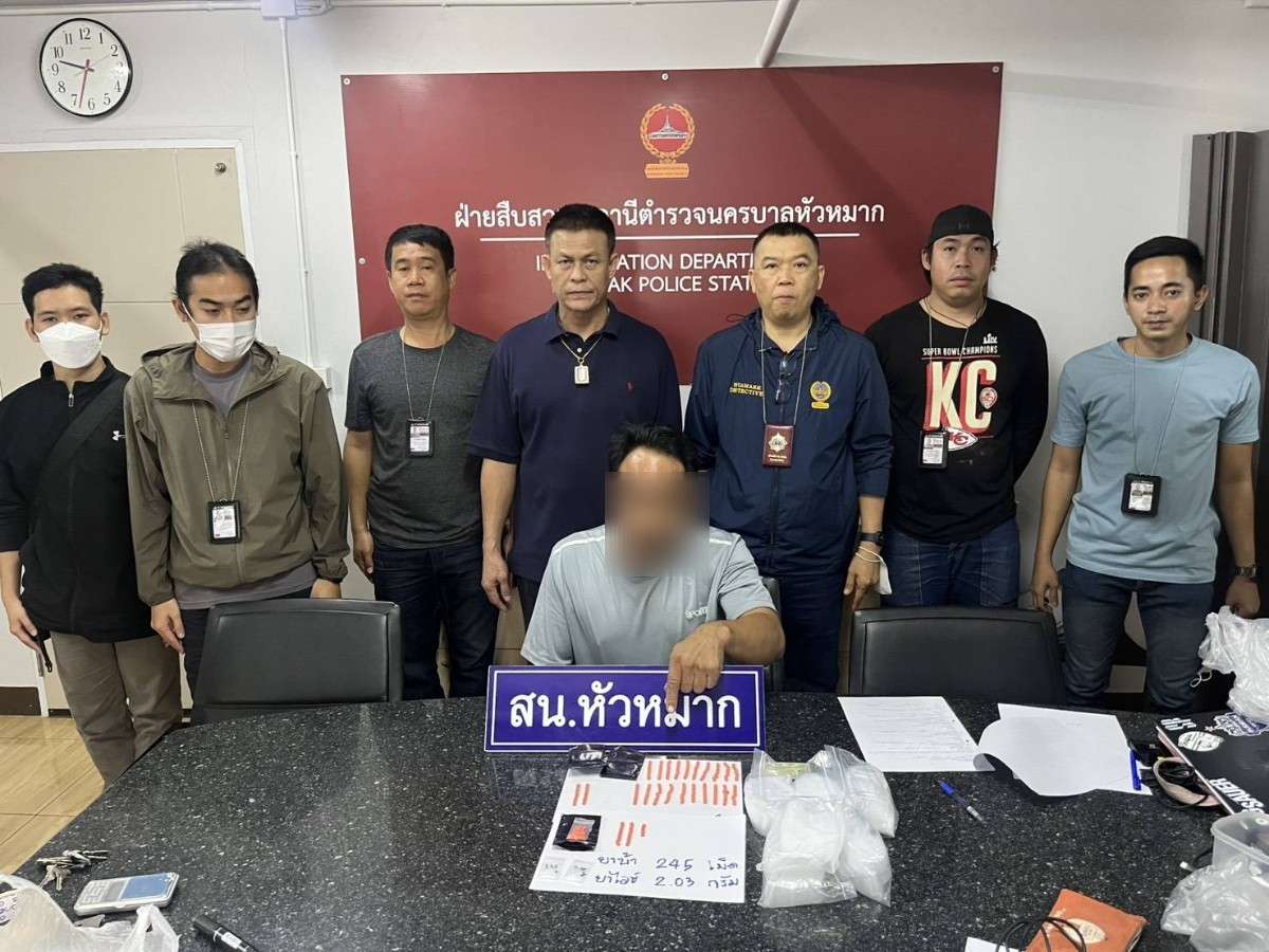 วันที่ 15 มกราคม 2569 ภายใต้การอำนวยการของ พ.ต.อ.ประสพโชค เอี่ยมพินิจผกก.สน.หัวหมาก,พ.ต.ท.ณัฐวัฒน์ ทารักษ์ รอง ผกก.สส.สน.หัวหมาก ได้สั่งการให้เจ้าหน้าที่ตำรวจ สน.หัวหมาก นำโดย พ.ต.ท.บำเพ็ญ นามฉวี สว.สส.สน.หัวหมาก พร้อมกำลังเจ้าหน้าที่ตำรวจฝ่ายสืบสวน จับกุมผู้ต้องหา นายสมชาย หรือแจ๊ค อายุ 45 ปี พร้อมด้วยของกลาง ยาเสพติดให้โทษประเภท 1 (เมทแอมเฟตามีนหรือยาบ้า) ชนิดกลม-แบน มีตัวอักษร WY สีส้ม บรรจุอยู่ในถุงพลาสติกสีน้ำเงินเข้ม ชนิด กดปิด-ดึงเปิด จำนวน 25 เม็ด ซุกซ่อนอยู่ใน กล่องผ้าสีดำ วางอยู่กลางห้อง และกับยาไอซ์ ชนิด เกล็ดใส บรรจุอยู่ในถุงพลาสติกใส ชนิดกดปิด-ดึงเปิด น้ำหนักช่างรวมถุง ประมาณ 1.05 กรัม น้ำหนักเฉพาะตัวยา 0.75 กรัม ซุกซ่อนอยู่ใน กล่องผ้าสีดำ วางอยู่กลางห้อง ของนายสมชาย หรือแจ๊คฯ พักอาศัยอยู่