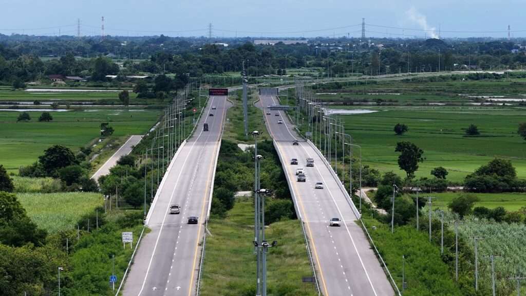 ทางเข้า รถทุกคันวิ่งผ่านได้เลย “ไม่มีไม้กั้น” ไม่ต้องหยุดรับบัตร กล้องจะอ่านป้ายทะเบียนอัตโนมัติ