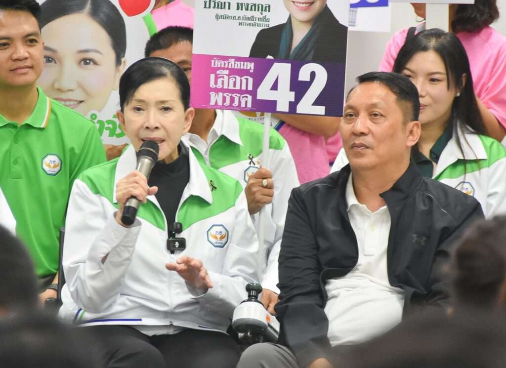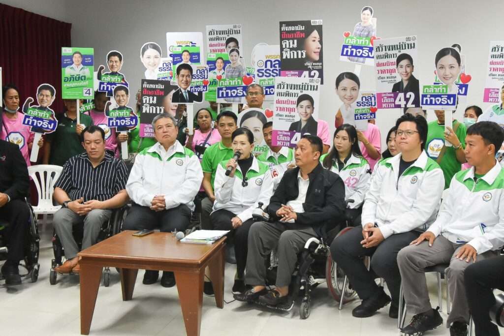 นนทบุรี, วันที่ 15 มกราคม – นางปวีณา หงสกุล ประธานที่ปรึกษาฝ่ายสังคม และ ผู้สมัคร สส.บัญชีรายชื่อพรรคกล้าธรรม (กธ.) พร้อมด้วย นายชาญวิทย์ มุนิกานนท์ ผู้สมัคร สส.บัญชีรายชื่อ นำคณะผู้สมัคร สส.กทม. ได้แก่ นายศุภฤทธิ์ มั่นนทีรัย เขต7, นางสาวพิมพ์ณดา ธีระประจักษ์ชาติ เขต 8 ,นายดิษยะฤทธิ์ รู้ดี เขต 10, นายนนท์ปวิธ แก้วงาม เขต 12, นายเตชสิทธิ์ ดนตรีรักษ์ เขต 13, นางสาวปวริศา คุณาวรนนท์ เขต 15 และผู้สมัคร สส.นนทบุรี ได้แก่ นายสุรเชษฐ ทองคำ เขต 4, นายอภิษิต งามบุษบงโสภี เขต 5 และนายคุณากร มั่นนทีรัย เขต 6 เดินทางมานำเสนอนโยบายพรรคกล้าธรรม ที่มูลนิธิส่งเสริมและพัฒนาคนพิการ อำเภอปากเกร็ด จ.นนทบุรี โดยมี นายภัทรพันธุ์ กฤษณา เลขาธิการสมาคมผู้พิการแห่งประเทศไทย ให้การต้อนรับ และมีสมาชิกมูลนิธิส่งเสริมและพัฒนาคนพิการร่วมรับฟังกว่า 100 คน