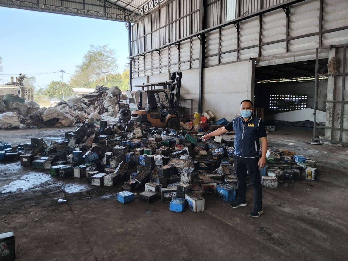 เมื่อเจ้าหน้าที่เข้าตรวจค้น พบเพียง นายวัชธนพงษ์ฯ อายุ 20 ปี แสดงตนเป็นผู้ดูแลสถานที่ จากการตรวจสอบภายในโรงงาน พบกองแบตเตอรี่เก่าใช้แล้วจำนวนมหาศาล น้ำหนักรวมกว่า 54,643.6 กิโลกรัม หรือเกือบ 55 ตัน นอกจากนี้ยังตรวจยึดของกลางอื่น ๆ ได้แก่ โฟร์คลิฟท์ จำนวน 1 คัน ขนาด 30 แรงม้า รถแบคโฮ จำนวน 1 คัน ขนาด 200 แรงม้า และเอกสารบัตรชั่งน้ำหนักแบตเตอรี่ แสดงน้ำหนักรวม 32,940 กิโลกรัม