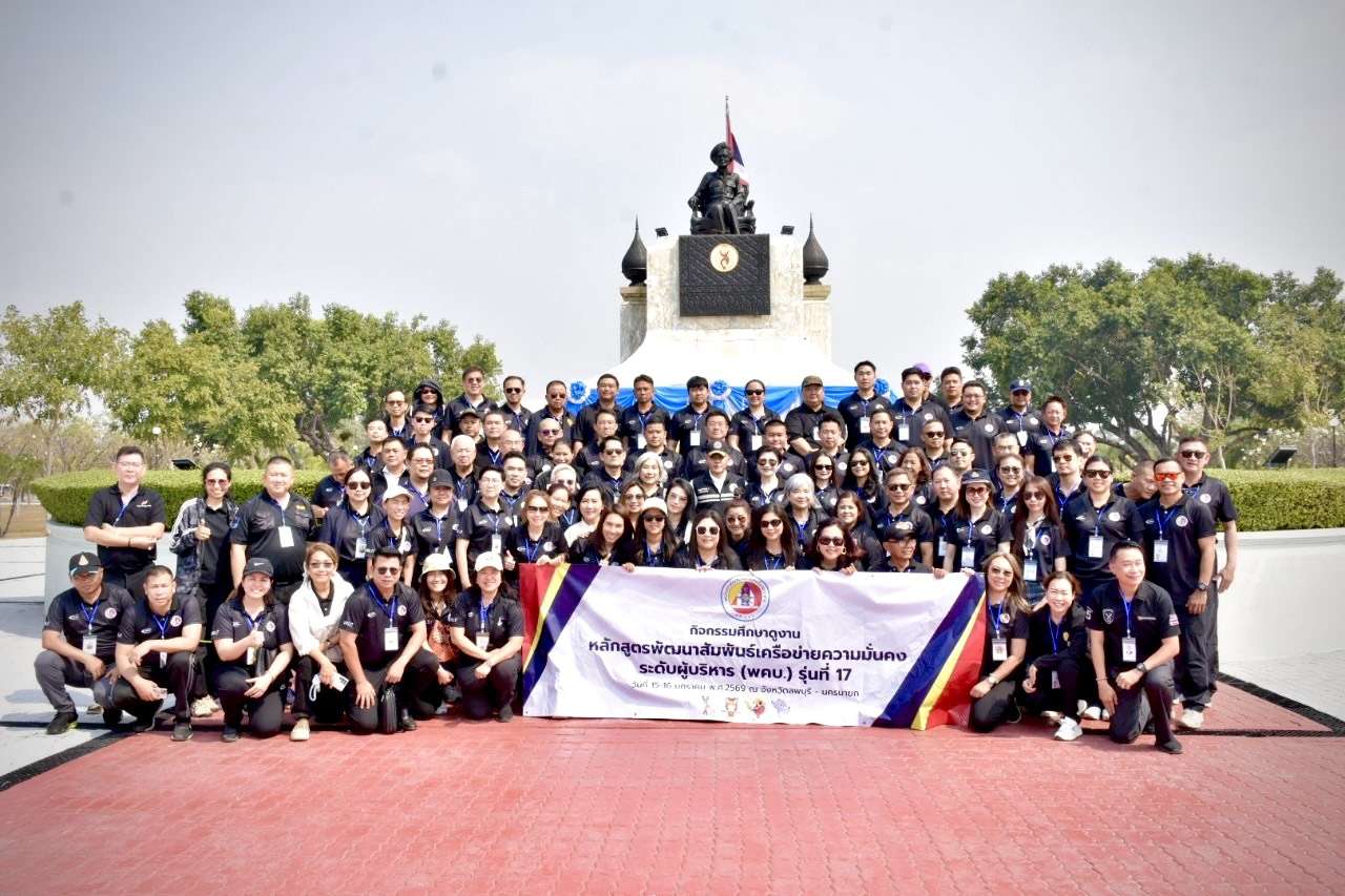 ระหว่างวันที่ 15–16 มกราคม 2569 พล.ท.ธนาธิป สว่างแสง ผู้อำนวยการสำนักกิจการมวลชนและสารนิเทศ กอ.รมน. พร้อมคณะผู้บริหารสมท.กอ.รมน. นำผู้เข้าร่วมอบรม หลักสูตรพัฒนาความสัมพันธ์ระดับผู้บริหาร (พคบ.) รุ่นที่ 17 ลงพื้นที่ลพบุรี–นครนายก เพื่อศึกษาความเชื่อมโยงองค์ความรู้ด้านความมั่นคงจากระดับนโยบายสู่การปฏิบัติจริง