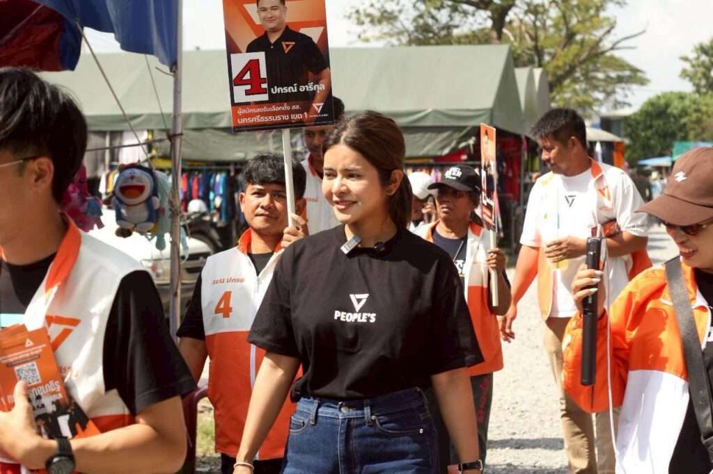 นครศรีธรรมราช, วันที่ 17 มกราคม – “ลิซ่า” ภคมน หนุนอนันต์ ผู้สมัคร สส.บัญชีรายชื่อ พรรคประชาชน ช่วยหาเสียงให้กับ “แมน” ปกรณ์ อารีกุล ผู้สมัคร สส.นครศรีธรรมราช เขต 1 เบอร์ 4 พรรคประชาชน โดย แสดงความมั่นใจหลังเดินหาเสียงพูดคุยกับประชาชนว่าการเลือกตั้งครั้งนี้ พื้นที่เขต 1 จะเกิดจุดเปลี่ยนครั้งประวัติศาสตร์ พร้อมระบุว่าจากการเดินเท้าสำรวจพื้นที่ซึ่งมีประชากรมากที่สุดในภาคใต้ ยิ่งเดินยิ่งสัมผัสได้ถึงความเปลี่ยนแปลง ชาวนครฯ ตื่นตัวและส่งสัญญาณชัดเจนว่า “ไม่เอาแล้วกับของเดิม” วาทกรรมในอดีตที่ว่าคนใต้รักใครชอบใคร “ส่งเสาไฟฟ้าลงก็ได้รับเลือก” ใช้ไม่ได้อีกต่อไปในยุคสมัยนี้