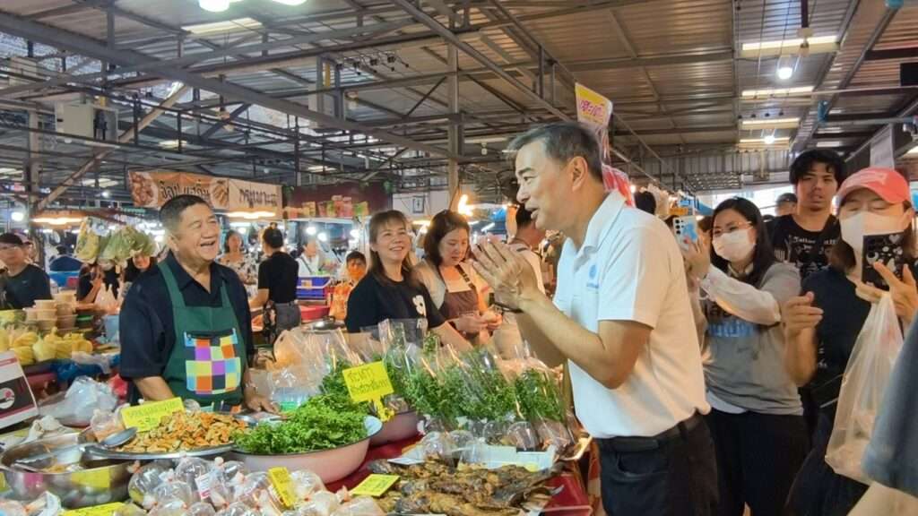 ตลาดแตก!! “อภิสิทธิ์- สกลธี” ช่วย 3 ผู้สมัคร สส.กทม. หาเสียง สวนหลวง ร.9-ตลาดอยู่สอาด ปชช.ขอให้ช่วยปราบทุนเทา