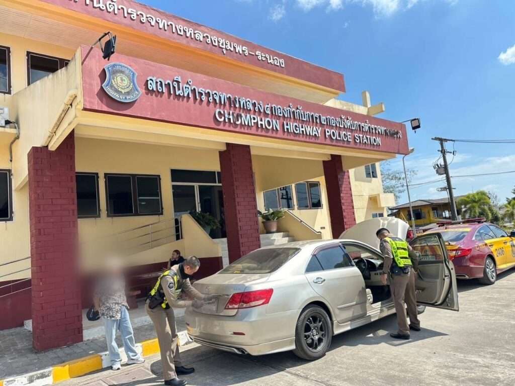 19 ม.ค. 69 – ตำรวจทางหลวงชุมพร จับหญิงวัย 43 ปี ใช้ป้ายภาษี-ทะเบียนปลอม วางหมวกตำรวจวางไว้คอนโซล หวังหน้าตบตาเจ้าหน้าที่ เลี่ยงถูกตรวจรถ