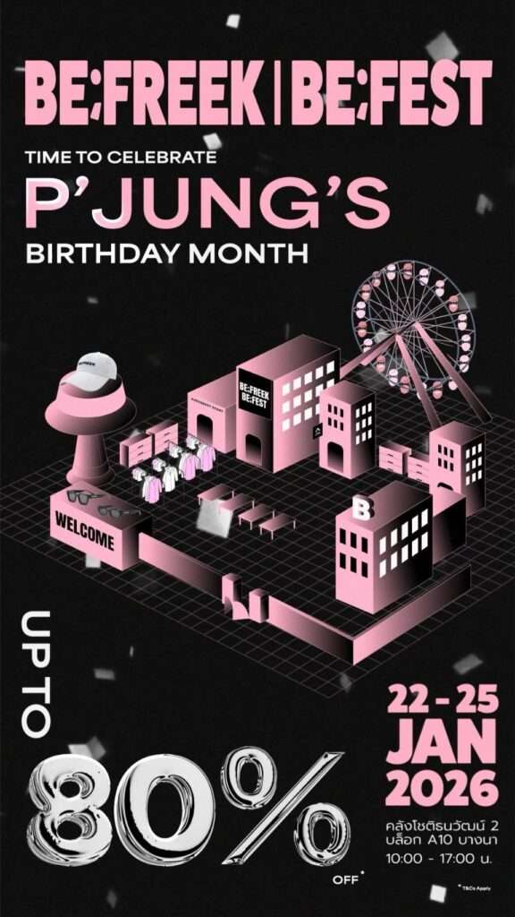 สำหรับผู้สนใจงาน BE;FREEK BE;FEST พร้อมเปิดโกดังให้ช็อปแบบมันส์ๆ ระหว่างวันที่ 22–25 มกราคม 2569 เวลา 10.00–17.00 น. ณ คลังโชติธนวัฒน์ 2 บล็อก A10 ถนนบางนาตราด กม.16 งานนี้นับเป็นอีกหนึ่งอีเวนต์แฟชั่นที่ทุกคนไม่ควรพลาด!!