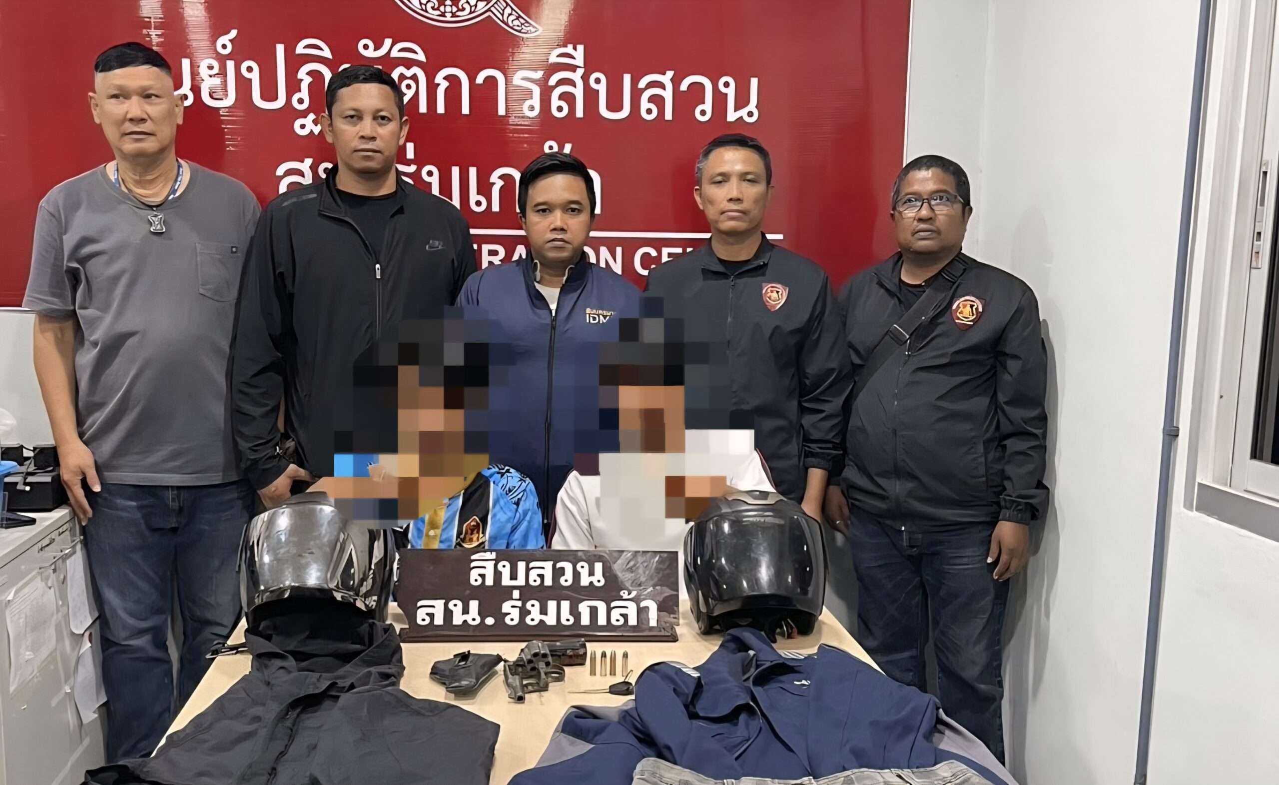 พร้อมกันนี้ เจ้าหน้าที่ได้ตรวจยึดของกลาง ได้แก่ อาวุธปืนพกสั้นชนิดลูกโม่ สีดำ จำนวน 1 กระบอก พร้อมเครื่องกระสุน ซึ่งเป็นอาวุธที่ใช้ก่อเหตุ รถจักรยานยนต์ ยี่ห้อฮอนด้า รุ่นเวฟ 125i สีแดง ไม่ติดแผ่นป้ายทะเบียน จำนวน 1 คัน ซึ่งใช้เป็นยานพาหนะในการก่อเหตุ