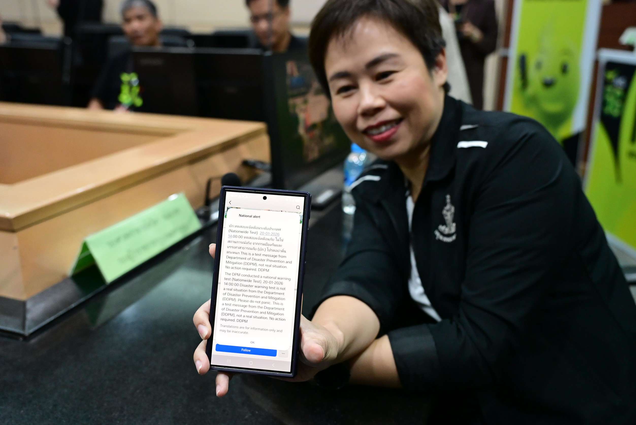 ทั้งนี้ กรมป้องกันและบรรเทาสาธารณภัย โดยศูนย์เตือนภัยแห่งชาติ มีหน้าที่ในการแจ้งเตือนภัย โดยปฏิบัติงานติดตามและวิเคราะห์ข้อมูลร่วมกับหน่วยงานที่เกี่ยวข้อง ที่ผ่านมา ปภ. กสทช. และผู้ให้บริการเครือข่าย ได้ร่วมกันพัฒนาระบบแจ้งเตือนภัยผ่านโทรศัพท์เคลื่อนที่ Cell Broadcast และทำการทดสอบระบบก่อนเปิดใช้งานเมื่อปี 2568 มาแล้วรวมจำนวน 3 ครั้ง ได้แก่ ระดับเล็ก (พื้นที่อาคาร) ระดับกลาง (พื้นที่อำเภอ) และระดับใหญ่ (พื้นที่จังหวัด)
