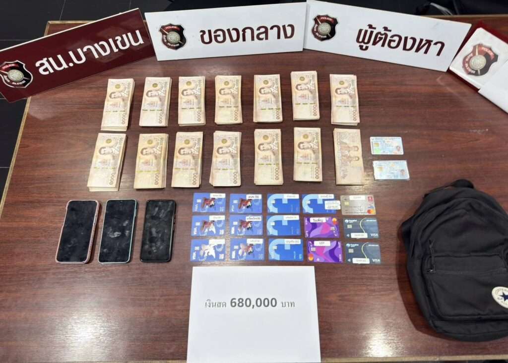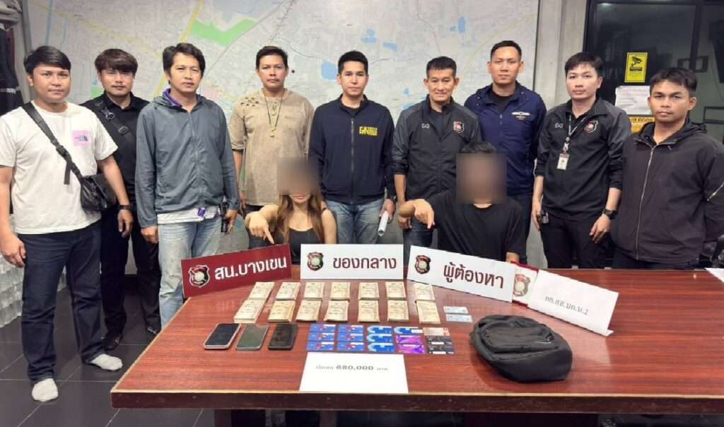 วันที่ 21 ม.ค.2569 พ.ต.อ.อนันต์ วรสาตร์ ผกก.สน.บางเขน พร้อมด้วย พ.ต.ท.คณิณ ค้ำคูณ รอง ผกก.ป., พ.ต.ท.พรชัย ว่องประเสริฐการ สว.สส.(รรท. รอง ผกก.สส.), พ.ต.ท.อดุลย์ โพธากาญ สวป.,พ.ต.ท.ยุรนันท์ เพชรมณี สว.สส. เจ้าหน้าที่ กก.สส.บก.น.2, ตำรวจสายตรวจและฝ่ายสืบสวน สน.บางเขน ร่วมกันจับกุม น.ส.จันจิรา คูณยา อายุ 34 ปี และนายวุฒิไกร นิลเกษ อายุ 30 ปี พร้อมของกลางเงินสด 680,000 บาท บัตรเอทีเอ็ม จำนวน 15 ใบและโทรศัพท์มือถือ 3 เครื่อง สถานที่จับกุมบริเวณตู้เอทีเอ็มธนาคารแห่งหนึ่ง หน้าร้านสะดวกซื้อ ภายในปั๊มน้ำมัน ถนนเทพรักษ์(ขาออก) แขวงท่าแร้ง เขตบางเขน กทม.