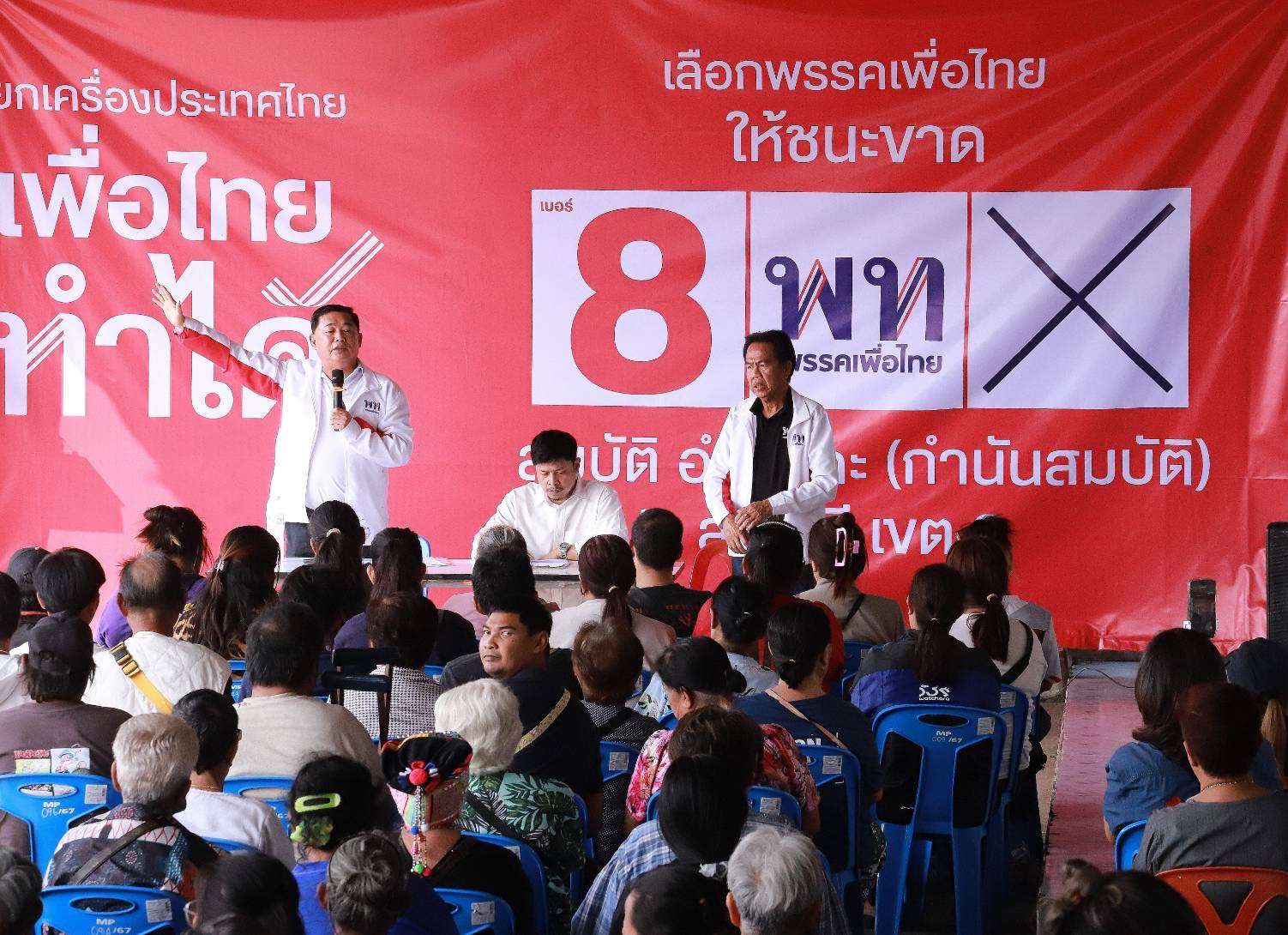 นายอนุชากล่าวว่า พรรคเพื่อไทยมีนโยบายที่เน้นไปที่การดูแลเศรษฐกิจฐานราก อยากให้ชาวบ้านมีชีวิตที่ดีขึ้น ด้วยการลดภาระหนี้ หนี้ 200,000 จ่าย 10% , หนี้เกษียณ, หนี้นอกระบบ, พักหนี้เกษตรกร, หวยเกษียณ ถูกรางวัลได้เงินล้านถ้าไม่ถูกเก็บไว้เป็นเงินออม, รถไฟฟ้า20บาท ตลอดสาย จึงอยากขอคะแนนเสียงให้กับนายสมบัติ อำนาคะ ผู้สมัคร สส.เขต 2 เบอร์ 8 เข้าไปทำหน้าที่ในสภาฯ ให้พรรคเพื่อไทยเบอร์ 9 ได้เข้าไปผลักดันนโยบายและแก้ไขปัญหาเหล่านี้ให้กับพี่น้องประชาชนได้เต็มที่