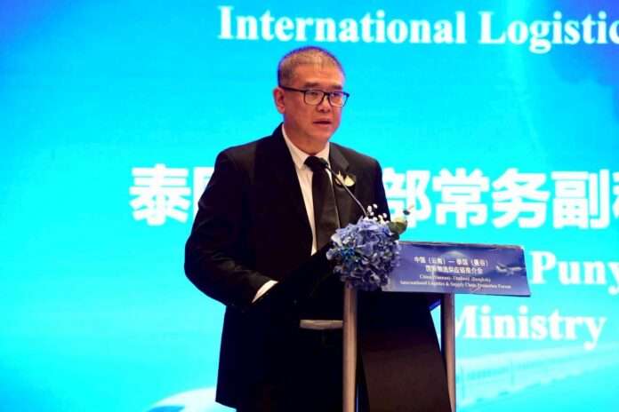 รองปลัดกระทรวงคมนาคม ร่วมกล่าวถ้อยแถลงในงานสัมมนาว่าด้วยการส่งเสริมโลจิสติกส์และห่วงโซ่อุปทานระหว่างไทย – ยูนนาน