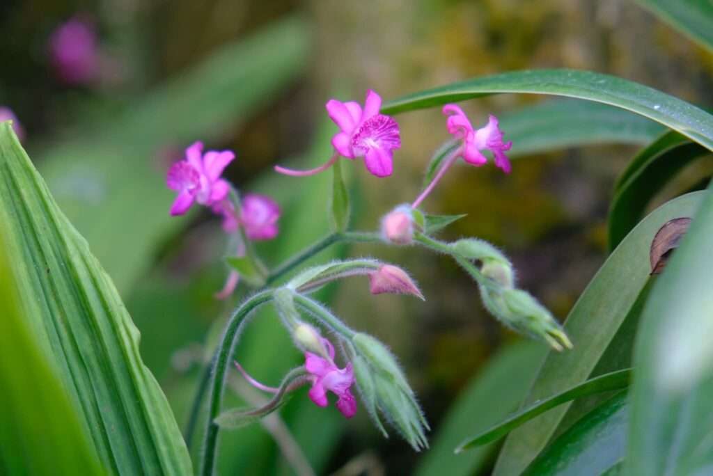กล้วยไม้ดินหายาก ลำลูกกล้วยคอดคล้ายน้ำเต้า ดอกชมพูอมเหลืองแปรเป็นสีน้ำตาลส้มก่อนร่วง พบกระจายตามป่าธรรมชาติทั่วประเทศ สะท้อนความอุดมสมบูรณ์และคุณค่าการอนุรักษ์