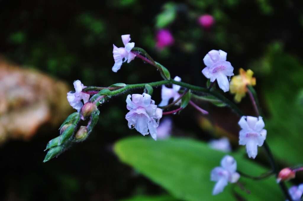 โคนดอกมีเดือยเรียวยาว เส้าเกสรและคางมีขนาดเล็กแต่สำคัญต่อกระบวนการผสมเกสร ผลมีรูปรีขนาดเล็ก เป็นวงจรชีวิตที่เชื่อมโยงความหลากหลายของสิ่งมีชีวิตในป่าเข้าด้วยกัน