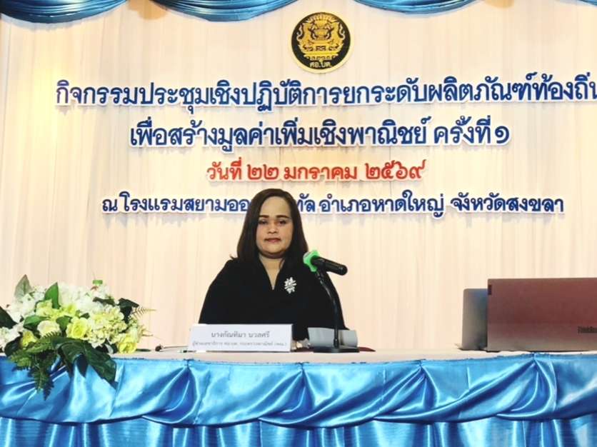 สงขลา – ปัตตานี, วันที่ 23 ม.ค. – นางกัณทิมา นวลศรี ผู้ช่วยเลขาธิการศูนย์อำนวยการบริหารจังหวัดชายแดนภาคใต้ (ศอ.บต.) เป็นประธานเปิดประชุมเชิงปฏิบัติการ “การยกระดับผลิตภัณฑ์ท้องถิ่นเพื่อสร้างมูลค่าเพิ่มเชิงพาณิชย์” ซึ่งกำหนดจัดขึ้นจำนวน 2 ครั้ง ได้แก่ ครั้งที่ 1 ณ ห้องประชุมบุปผาแกรนด์ ชั้น 5 โรงแรมสยามออเรียนทัล อำเภอหาดใหญ่ จังหวัดสงขลา เมื่อวานนี้ (22) และครั้งที่ 2 ณ ห้องประชุมพญาตานี ชั้น 1 โรงแรมเซาท์เทิร์นวิว จังหวัดปัตตานี วันนี้ โดยมีนางสาวขวัญจิต เคียงตระกูล ผู้อำนวยการกองส่งเสริมและสนับสนุนงานพัฒนาฝ่ายพลเรือน พร้อมด้วยเครือข่ายผู้ประกอบการจากหอการค้า สภาอุตสาหกรรม สำนักงานส่งเสริมวิสาหกิจขนาดกลางและขนาดย่อม (สสว.) ตลอดจนภาคเกษตรกรในพื้นที่ เข้าร่วมแลกเปลี่ยนความคิดเห็นและข้อเสนอแนะอย่างกว้างขวาง
