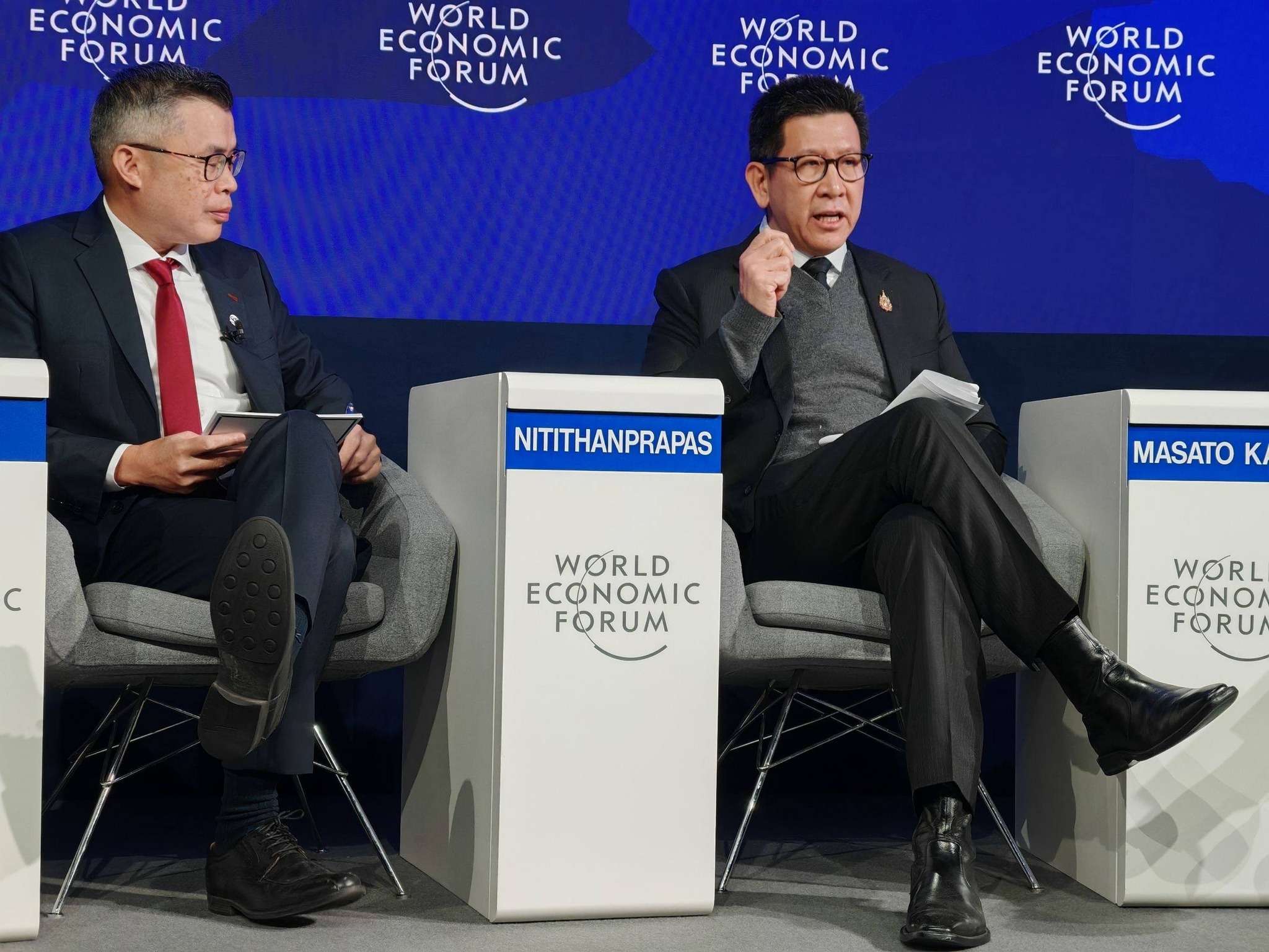 เมืองดาวอส สมาพันธรัฐสวิส, วันที่​ 22 มกราคม (ตามเวลาท้องถิ่น​) – ดร.เอกนิติ นิติทัณฑ์ประภาศ รองนายกรัฐมนตรี และรัฐมนตรีว่าการกระทรวงการคลัง ซึ่งนำทีมไทยแลนด์เข้าร่วมประชุมเวที World Economic Forum Annual Meeting 2026 (WEF 2026) ขึ้นกล่าวในฐานะผู้ร่วมอภิปรายหลัก ในหัวข้อ “อาเซียนเคลื่อนตัวเร็วเพียงพอหรือไม่ (Is ASEAN Moving Fast Enough?) โดยชี้ว่า อาเซียนถูกทดสอบด้วย “สามเมกะชิฟต์” ทั้ง’ภูมิรัฐศาสตร์‘ และ ’ภูมิเศรษฐศาสตร์‘ ที่เขย่าการค้าและห่วงโซ่อุปทาน AI ที่พลิกเกมผลิตภาพ และ สภาพภูมิอากาศที่เร่งเศรษฐกิจสีเขียว
