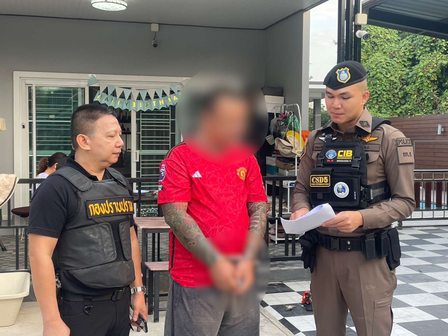 พล.ต.ต.พัฒนศักดิ์ บุบผาสุวรรณ ผบก.ป. สั่งการให้ พ.ต.อ.ธนวัฒน์ หิ้นยกฮิ่น ผกก.5 บก.ป. พ.ต.ท.สุขสิทธิ์ ประเสริฐ สว.กก.5 บก.ป. พร้อมกำลังเข้าจับกุม นายกิตติศักดิ์ฯ อายุ 37 ปี ตามหมายจับศาลจังหวัดเชียงใหม่ที่ จ.401/2566 ลงวันที่ 10 พฤษภาคม 2566 ข้อหา “ร่วมกันประกอบธุรกิจสินเชื่อโดยไม่ได้รับอนุญาต และเรียกเก็บดอกเบี้ยเกินอัตราที่กฎหมายกำหนด”ได้บริเวณบ้านพัก หมู่ 2 ต.ท่ามะขาม อ.เมืองกาญจนบุรี จ.กาญจนบุรี
