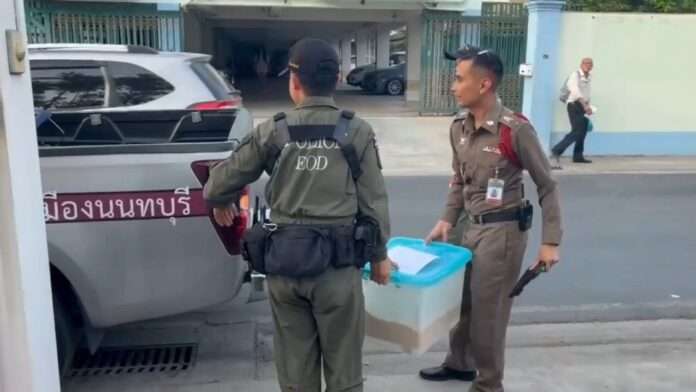 เมื่อวันที่ 24 ม.ค. 69 พ.ต.ท.ธราธิป เพ็งขำ สว.สส.สภ.เมืองนนทบุรี, พ.ต.ท.ฐิติปกรณ์ คุ้มปานอินทร์ สว.สอบสวน.สภ.เมืองนนทบุรี และเจ้าหน้าที่ตำรวจสภ.เมืองนนทบุรี ได้รับแจ้งพบวัตถุต้องสงสัยภายในบ้านหลังหนึ่ง ซอยพิบูลย์สงคราม 22 ม.10 ต.ตลาดขวัญ อ.เมืองนนทบุรี จ.นนทบุรี จึงพร้อมด้วยเจ้าหน้าที่หน่วยเก็บกู้วัตถุระเบิด หรือ EOD เร่งเข้าตรวจสอบ