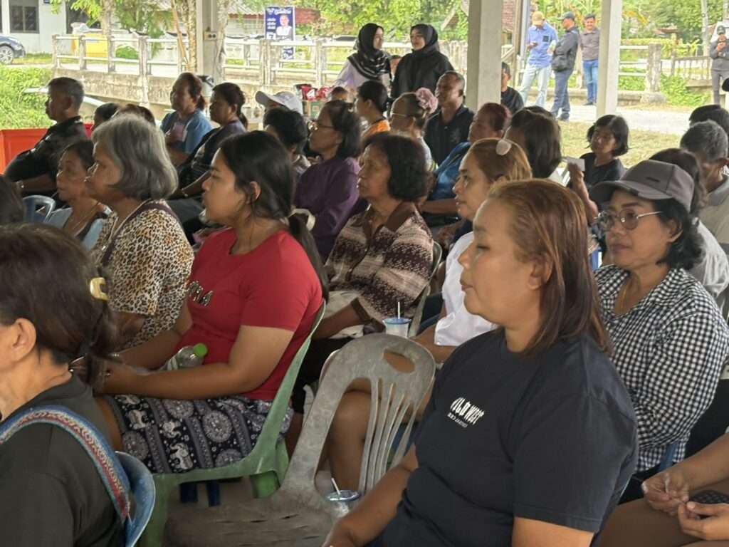 ปัตตานี, วันที่ 24 ม.ค. – พ.ต.อ.ทวี สอดส่อง หัวหน้าพรรคประชาชาติ อดีตรัฐมนตรีว่าการกระทรวงยุติธรรม พร้อมด้วย นายอับดุลกอฮาร์ อาแวปูเตะ ผู้สมัคร สส. เขต 4 ปัตตานี (เบอร์ 2) เดินทางพบปะกลุ่มพี่น้องไทยพุทธ ที่ศาลาประชาคมบ้านทุ่งคล้า อำเภอสายบุรี จังหวัดปัตตานี เพื่อรับฟังปัญหาความเดือดร้อนและนำเสนอนโยบายพรรค โดยเน้นไปที่เรื่องความปลอดภัยในชีวิต การแก้ปัญหาที่ดิน และวิกฤตเศรษฐกิจปากท้อง