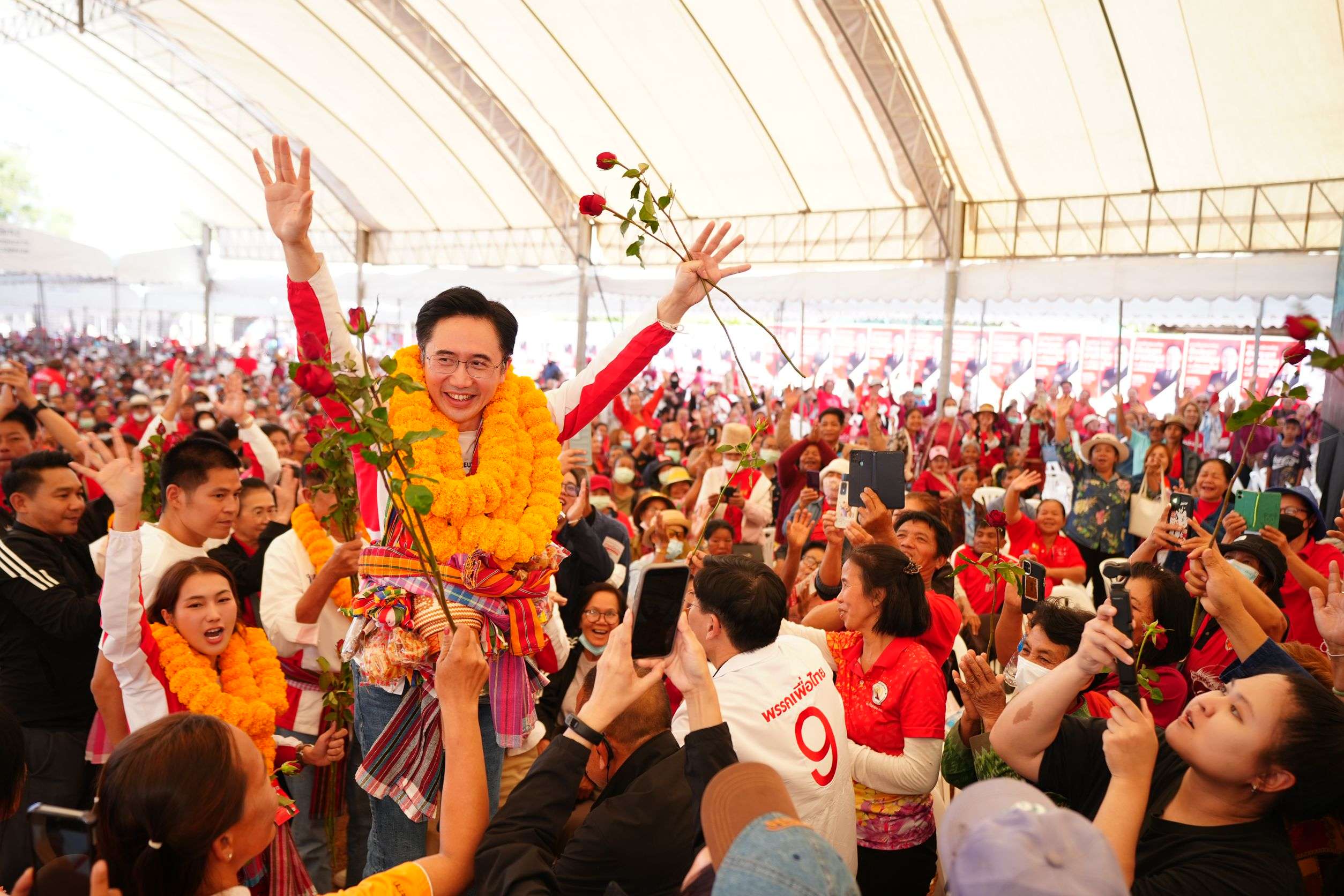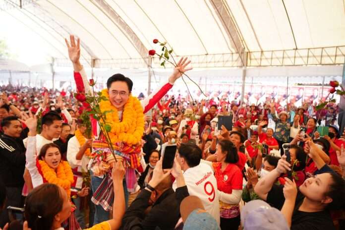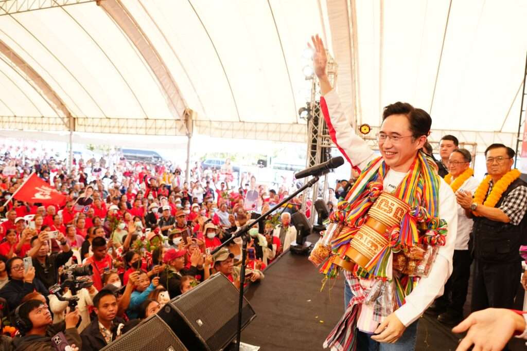 ชัยภูมิ วันที่ 25 ม.ค. – ศ.ดร. ยศชนัน วงศ์สวัสดิ์ แคนดิเดตนายกรัฐมนตรี พรรคเพื่อไทย พร้อมด้วย นายประเสริฐ จันทรรวงทอง เลขาธิการพรรคเพื่อไทย และผู้สมัคร สส. แบบบัญชีรายชื่อ, นายสุทิน คลังแสง ผู้สมัคร สส. แบบบัญชีรายชื่อ และนายณัฐวุฒิ ใสยเกื้อ ผู้ช่วยหาเสียงพรรคเพื่อ เดินทางไปช่วยผู้สมัคร สส.ชัยภูมิ หาเสียง ท่ามกลางบรรยากาศการต้อนรับอย่างอบอุ่น โดยมีประชาชนมอบพวงมาลัยดอกดาวเรือง พวงมาลัยมะเขือเทศ มะเขือพวง พวงมาลัยข้าวแต๋น พวงมาลัยหมูแดดเดียว พวงมาลัยผักสด พวงมาลัยกล้วยฉาบ และพวงมาลัยข้าวเหนียวและหม่ำ ให้ นายยศชนัน และคณะอย่างต่อเนื่อง