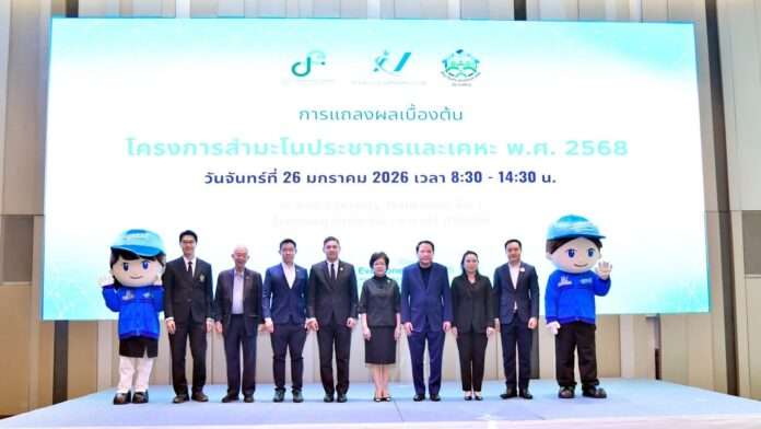 กรุงเทพฯ, วันที่ 26 ม.ค. – นางจีราวรรณ บุญเพิ่ม ที่ปรึกษารัฐมนตรีว่าการกระทรวงดิจิทัลเพื่อเศรษฐกิจและสังคม (ดีอี) พร้อมด้วย นายพชร อนันตศิลป์ ปลัด ดีอี ร่วมแถลงข่าว “ผลเบื้องต้นสำมะโนประชากรและเคหะ พ.ศ. 2568” โดยสำนักงานสถิติแห่งชาติ เผยโครงสร้างประชากรไทยมีการเปลี่ยนแปลงอย่างมีนัยสำคัญ โดยจำนวนประชากรที่อาศัยอยู่ในประเทศไทยเพิ่มขึ้นด้วยอัตราการเพิ่มของประชากรที่ลดลง และขนาดครัวเรือนที่เล็กลง พร้อมประกาศความสำเร็จในการเก็บรวบรวมข้อมูลรูปแบบดิจิทัล (Digital Census)