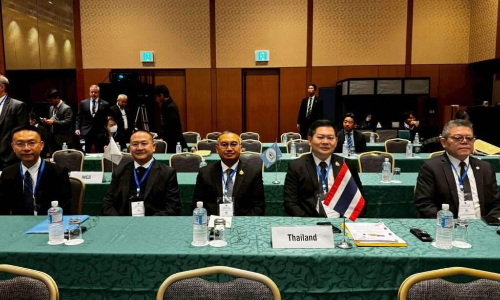 ในด้านนโยบาย สำนักงาน ป.ป.ส. ได้ดำเนินการแก้ไขปัญหายาเสพติดอย่างสมดุล ครอบคลุมมิติการบังคับใช้กฎหมาย การป้องกัน การบำบัดรักษา และการช่วยเหลือในระดับชุมชน ผ่านกลไกสำคัญ อาทิ สายด่วน 1386 เพื่อให้ประชาชนสามารถเข้าถึงการช่วยเหลือและการแก้ไขปัญหายาเสพติดได้อย่างมีประสิทธิภาพ พร้อมทั้งยืนยันที่จะให้ความร่วมมือในทุกมิติกับทุกประเทศในการต่อสู้กับปัญหายาเสพติดต่อไป โดยในช่วงการนำเสนอของประเทศไทย ผู้แทนจากสำนักงาน ป.ป.ส. และกองบัญชาการตำรวจปราบปรามยาเสพติด ได้นำเสนอรายงานสถานการณ์ยาเสพติดของประเทศไทยในปัจจุบัน รวมถึงความร่วมมือระหว่างประเทศไทยกับนานาประเทศในกิจกรรมที่สำคัญ อาทิ การประสานงานและการสืบสวนขยายผลเครือข่ายนักค้ายาเสพติดรายสำคัญ และความร่วมมือในการติดตามจับกุมผู้ต้องหาคดียาเสพติดที่หลบหนีหมายจับไปยังต่างประเทศ ซึ่งถือเป็นตัวอย่างความสำเร็จอันเกิดจากความร่วมมือของประเทศภาคีหลายฝ่ายอย่างเป็นรูปธรรม