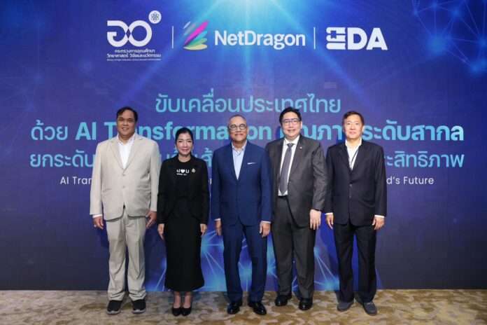 กรุงเทพฯ – กระทรวงการอุดมศึกษา วิทยาศาสตร์ วิจัยและนวัตกรรม (อว.) ผนึกกำลัง NetDragon ผู้นำด้านเทคโนโลยี และแพลตฟอร์มการเรียนรู้ระดับโลก และบริษัท EDA (Thailand) เดินหน้ายกระดับกำลังคนไทยสู่เศรษฐกิจดิจิทัล จัดงาน “ขับเคลื่อนประเทศไทยด้วย AI Transformation คุณภาพระดับสากล ยกระดับการเรียนรู้สู่เส้นทางอาชีพอย่างมีประสิทธิภาพ” ณ โรงแรมคอนราด กรุงเทพฯ เพื่อขับเคลื่อนการพัฒนากำลังคนไทยให้สอดรับกับโครงสร้างเศรษฐกิจและตลาดแรงงานแห่งอนาคต